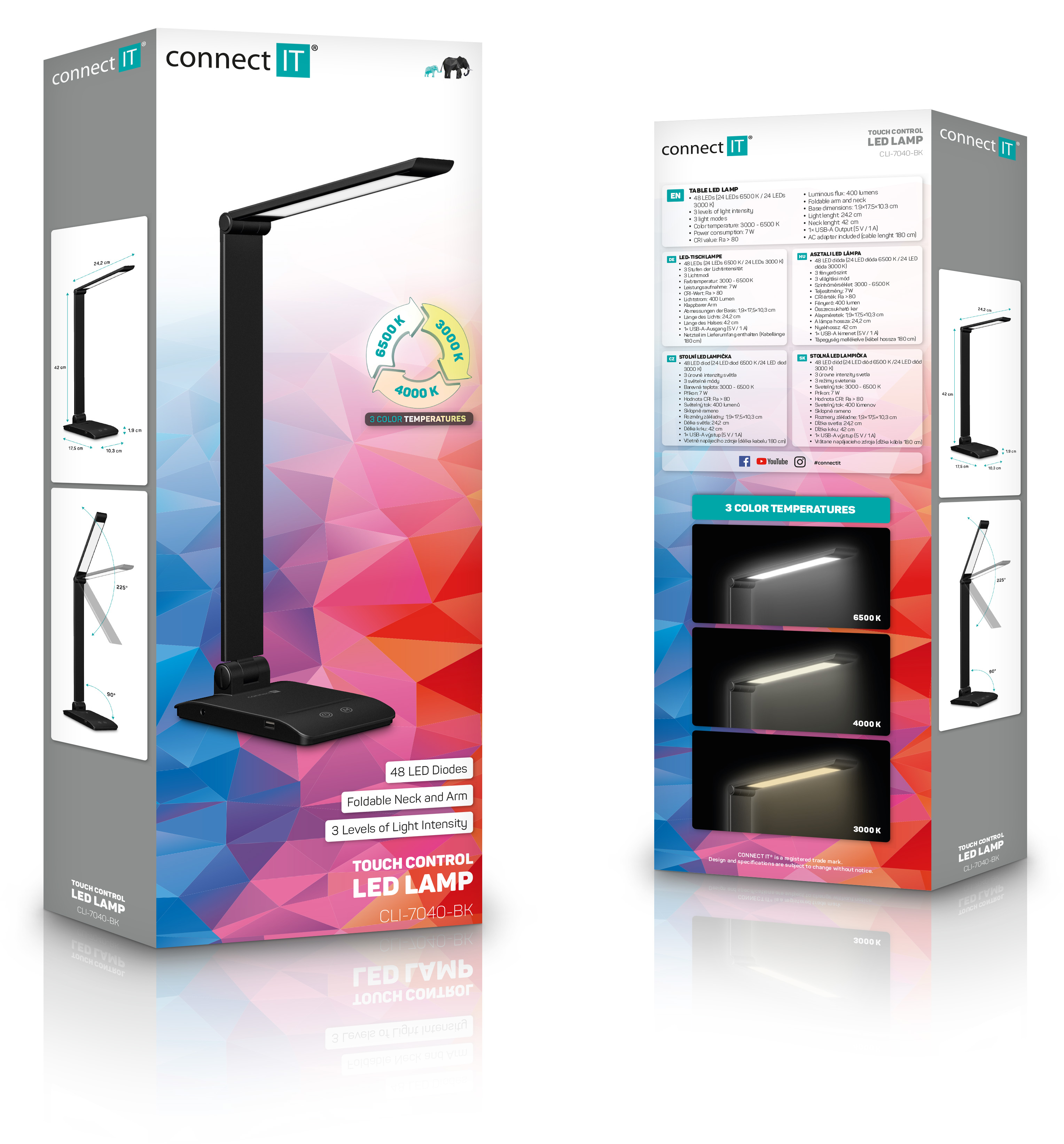 Výhody produktu: Díky sklopnému rameni a krku nastavíte dokonalý úhel pro jakoukoliv práci. Lampička disponuje USB-A výstupem s výkonem 5 W a dvěma praktickými dotykovými spínači, které umožňují zapnout/vypnout lampu, nastavit 3 úrovně jasu světla nebo nastavit barevnou teplotu světla ve 3 různých úrovních (3000/4000/6500 K).