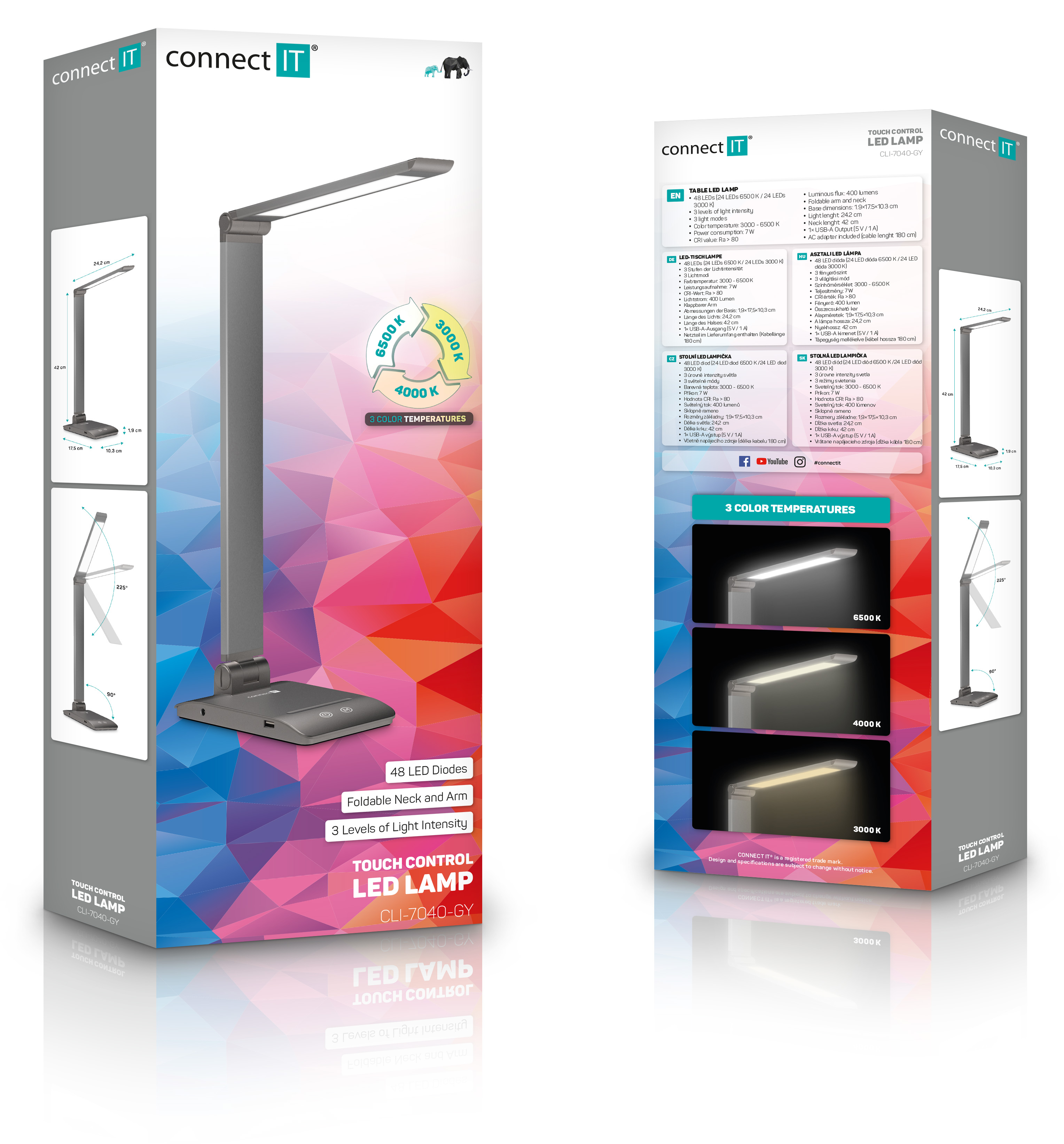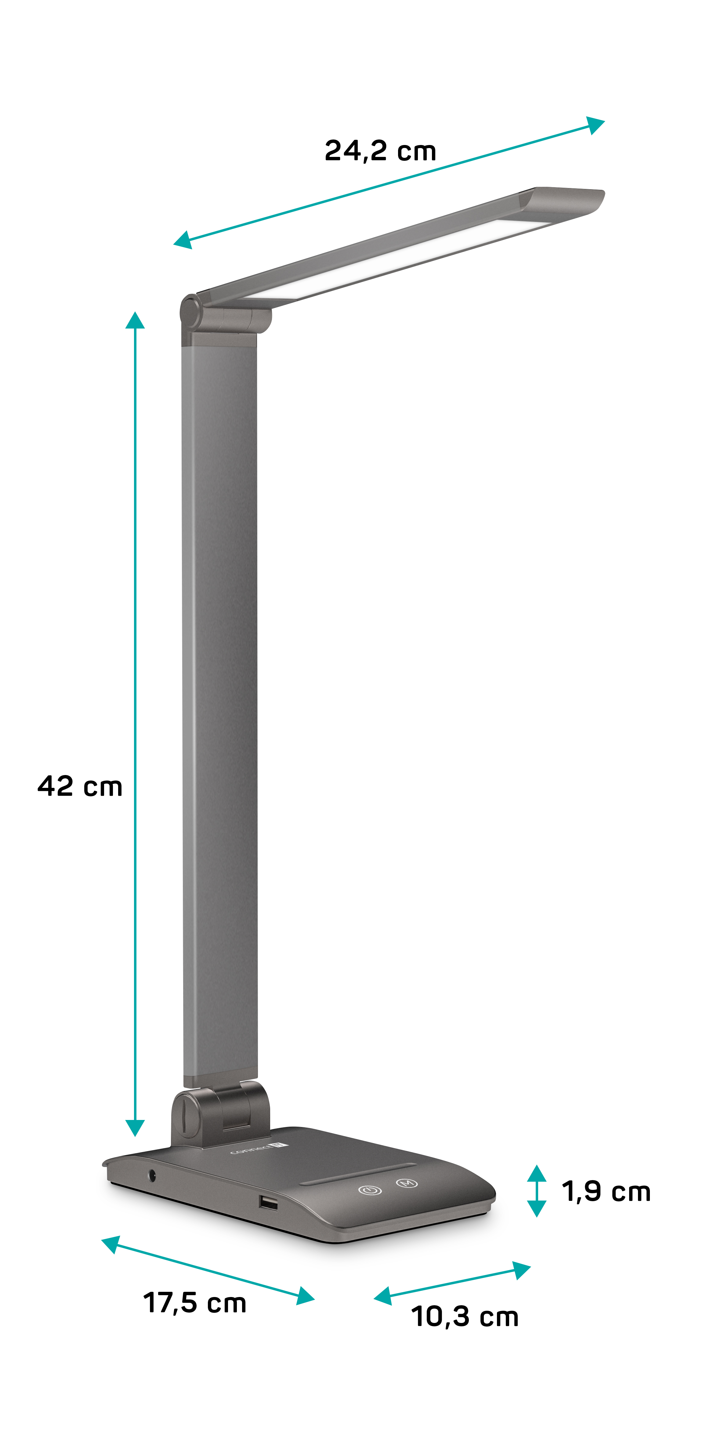 Výhody produktu: Díky sklopnému rameni a krku nastavíte dokonalý úhel pro jakoukoliv práci. Lampička disponuje USB-A výstupem s výkonem 5 W a dvěma praktickými dotykovými spínači, které umožňují zapnout/vypnout lampu, nastavit 3 úrovně jasu světla nebo nastavit barevnou teplotu světla ve 3 různých úrovních (3000/4000/6500 K).