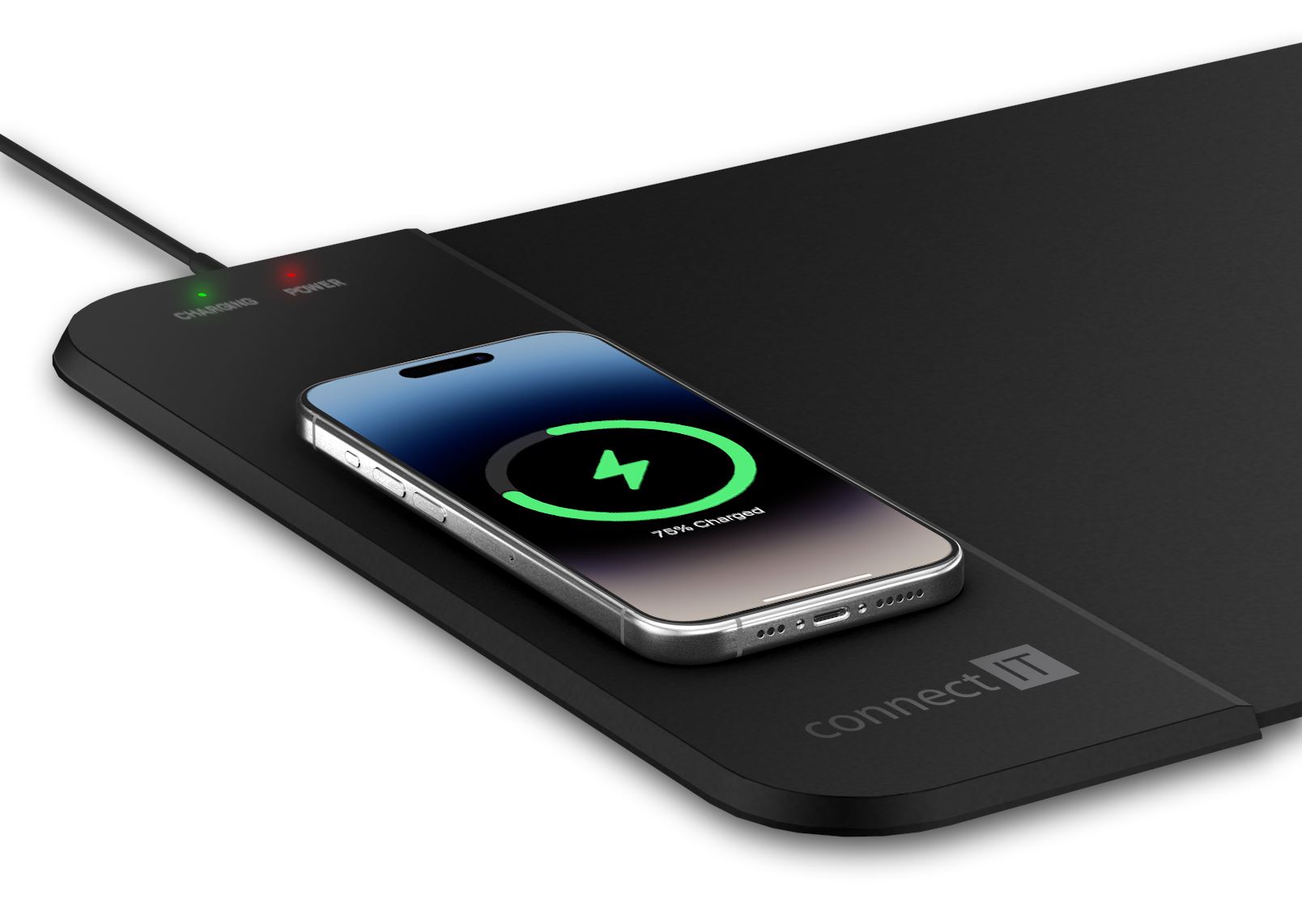 Výhody produktu: Na kvalitní a stylové podložce CONNECT IT CHARGE se projeví pozitivní vlastnosti vaší myši. Moderní materiál, ze kterého je podložka vyrobena, poskytuje myši dobře snímatelný podklad i pro nejjemnější laserové snímání. Dvouvrstvý materiál kombinující protiskluznost na spodní straně a ideální vlastnosti pro myši na vrchní straně se výraznou měrou zaslouží o ideální poměr mezi kontrolou nad myší a skluzem. Bezdrátové nabíjení umožňuje nabíjet zařízení pouhým položením na nabíječku, tedy bez nutnosti připojování napájecího kabelu do telefonu. Funguje na principu elektromagnetické indukce mezi dvěma cívkami, přičemž jedna cívka se nachází v telefonu samotném a druhá v bezdrátové nabíječce. Napájení podložky zajistí USB-C kabel, který je součástí balení.