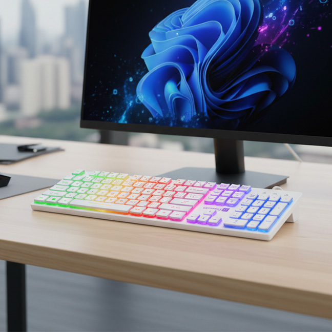 Výhody produktu: Klávesnice kromě klasických funkcí disponuje 12 multimediálními klávesami, které se obzvláště hodí do kancelářského prostředí. Její rainbow podsvícení vám umožní pracovat i v pozdních hodinách při nízkém osvětlení. Příjemný ergonomický náklon klávesnice pomáhá proti únavě zápěstí během dlouhých pracovních relacích.