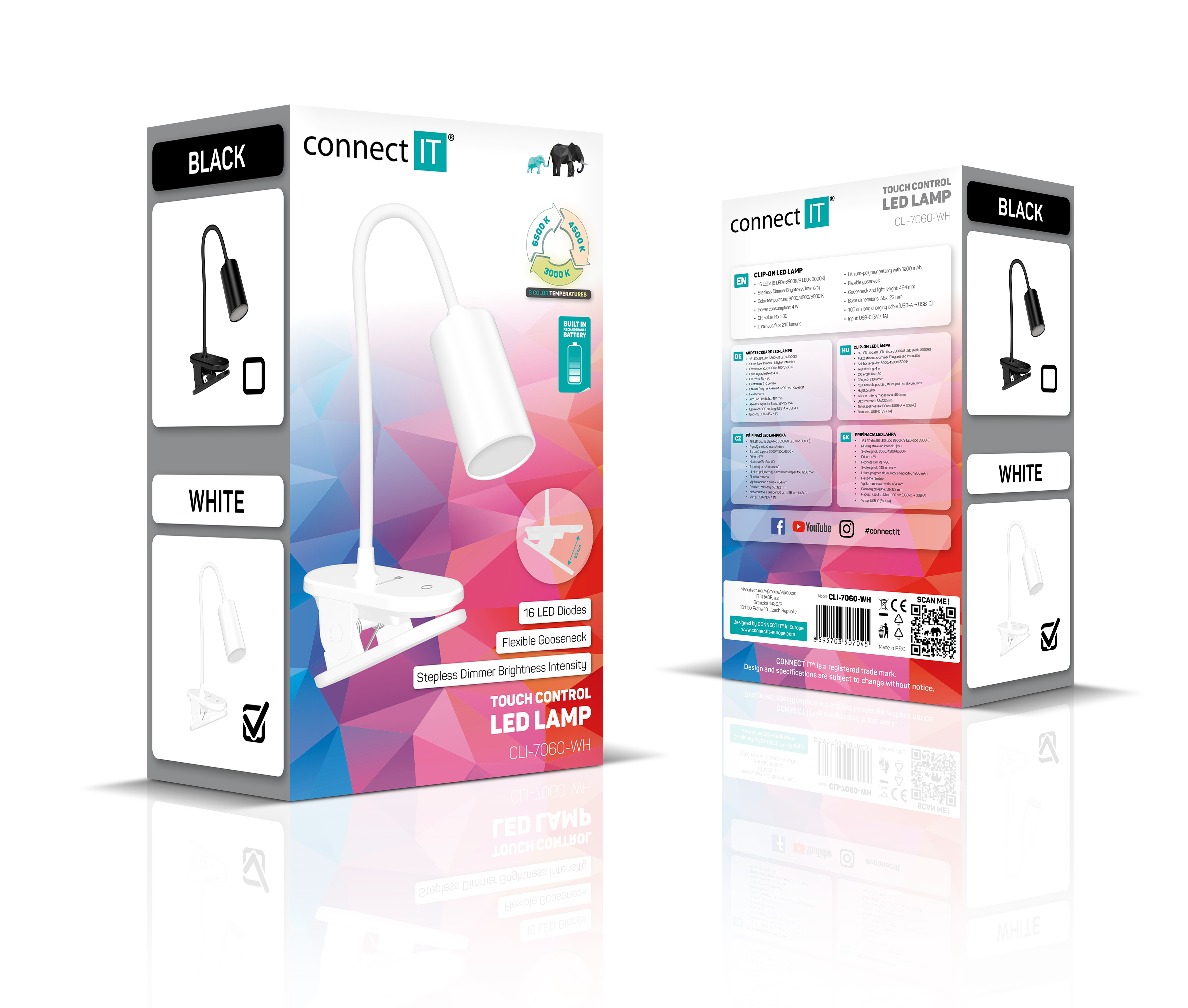 Výhody produktu: Díky flexibilnímu rameni nastavíte dokonalý úhel pro jakoukoliv práci. Lampička disponuje praktickým dotykovým spínačem, který umožňuje zapnout/vypnout lampu, plynule nastavit úroveň jasu světla nebo nastavit barevnou teplotu světla ve 3 různých úrovních (3000/4500/6500 K). Pomocí klipu můžete lampičku umístit nejen na Váš pracovní stůl, ale například na poličku, noční stolek či rám postele.