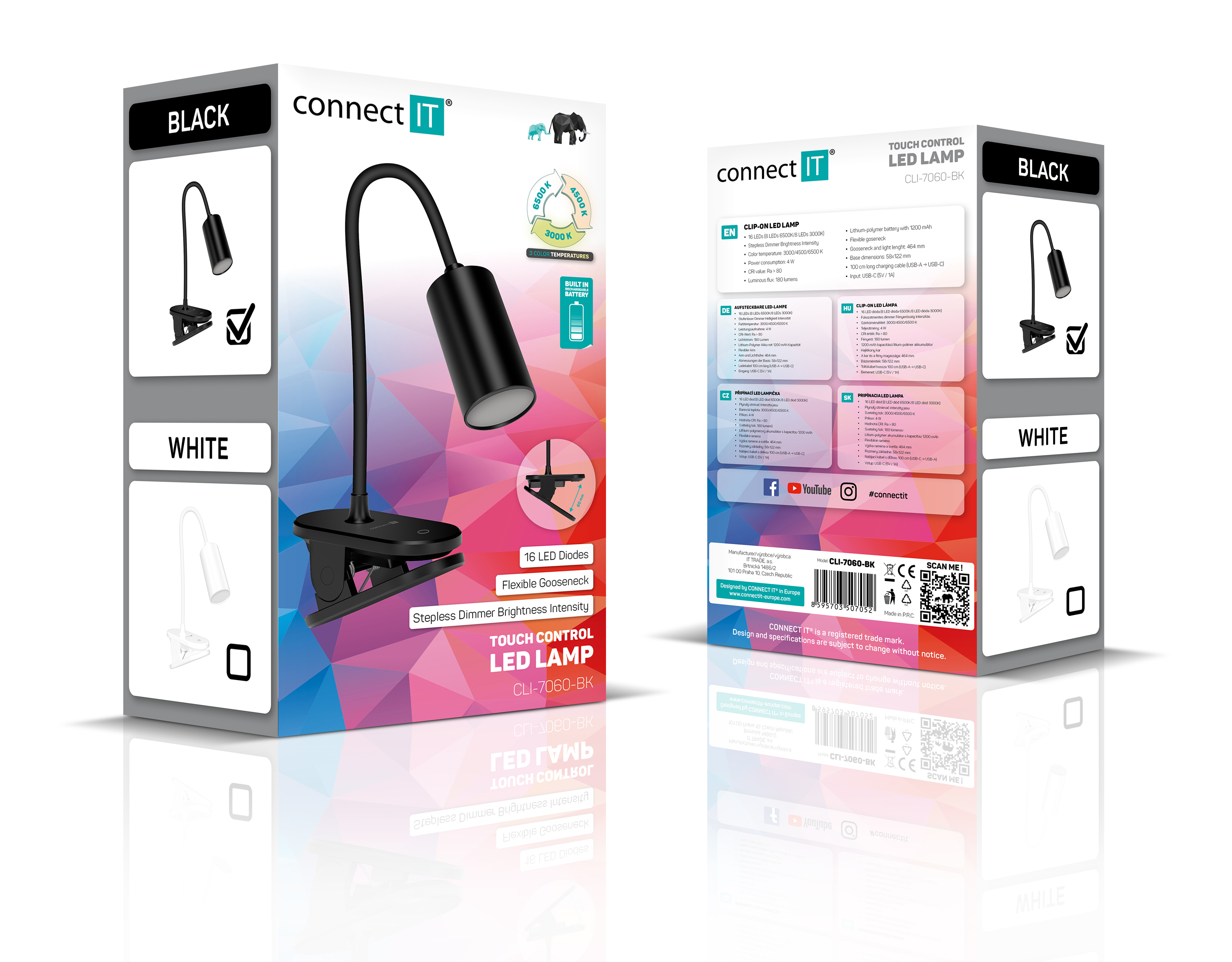 CONNECT IT CLIP 2 stolní Led lampička s klipem - Černá