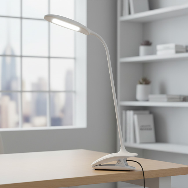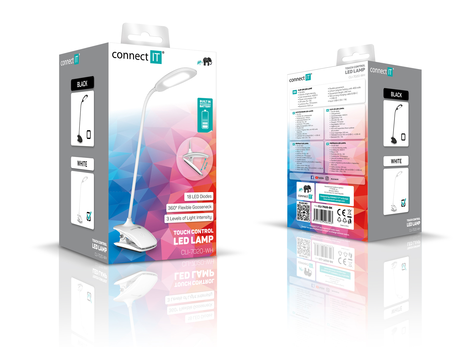 Výhody produktu: Díky flexibilnímu rameni nastavíte dokonalý úhel pro jakoukoliv práci. Lampička disponuje praktickým dotykovým spínačem, který umožňuje zapnout/vypnout lampu a nastavit 3 úrovně jasu světla. Pomocí klipu můžete lampičku umístit nejen na Váš pracovní stůl, ale například na poličku, noční stolek či rám postele.