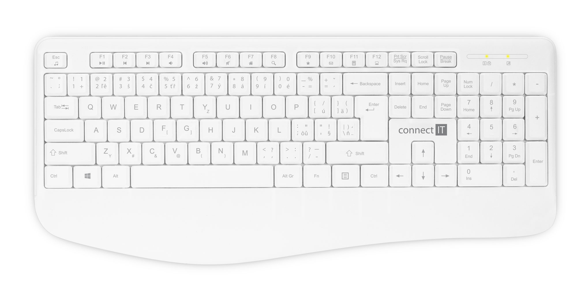 CONNECT IT Combo bezdrátová klávesnice + myš, (+1x AAA +1x AA baterie zdarma), CZ + SK layout - Bílá