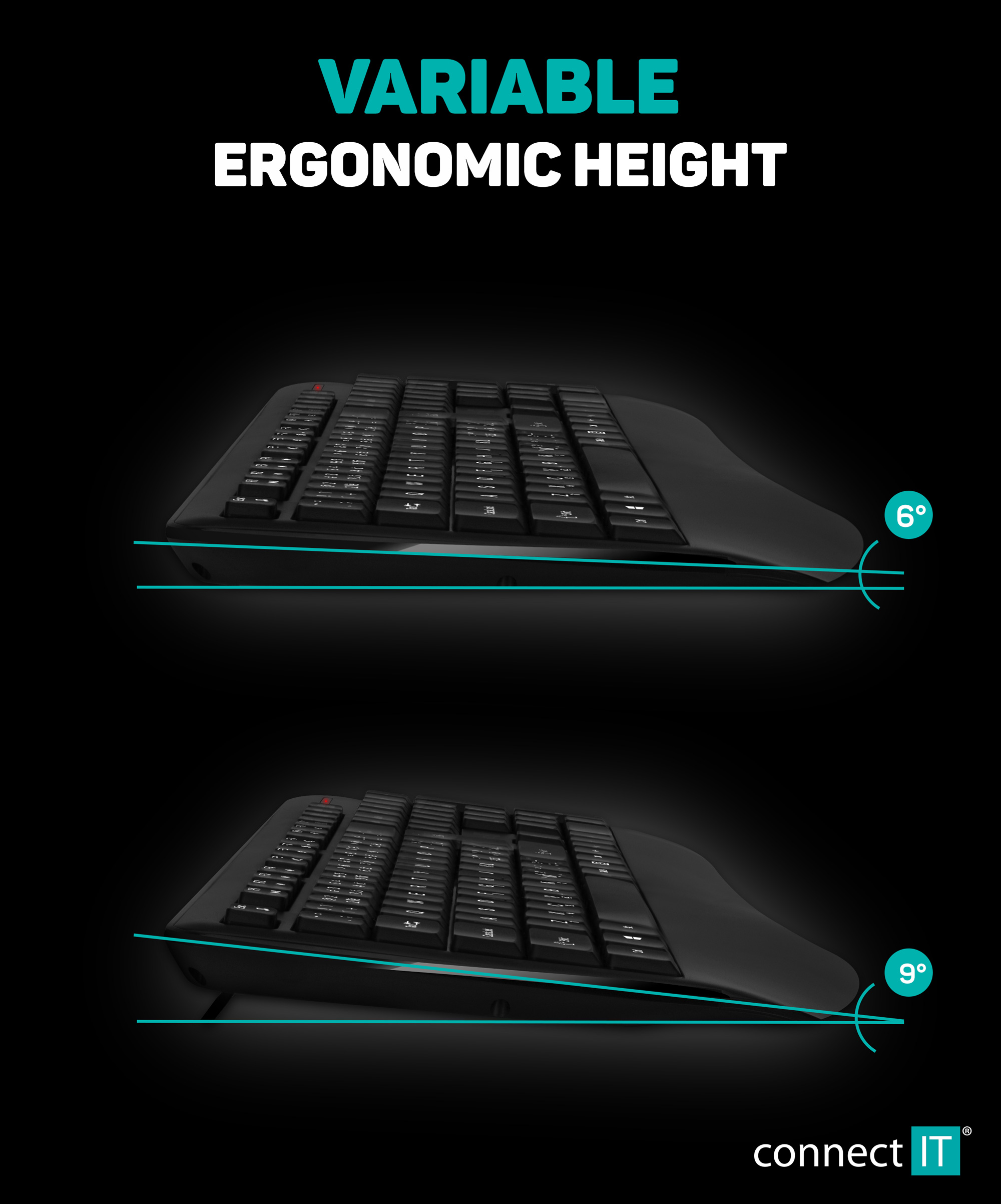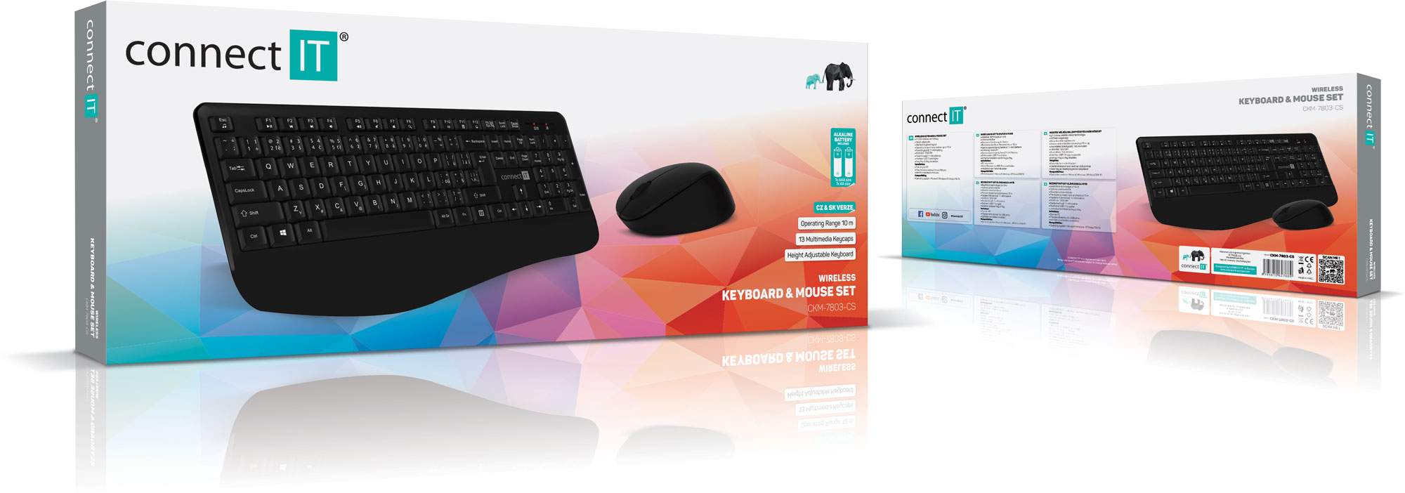 CONNECT IT Combo bezdrátová klávesnice + myš, (+1x AAA +1x AA baterie zdarma), CZ + SK layout - Černá