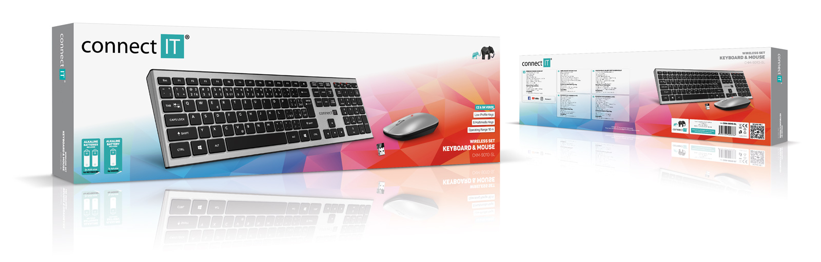CONNECT IT Combo bezdrátová stříbrná klávesnice + myš, (+2x AAA +1x AA baterie zdarma), CZ + SK layout - Stříbrná