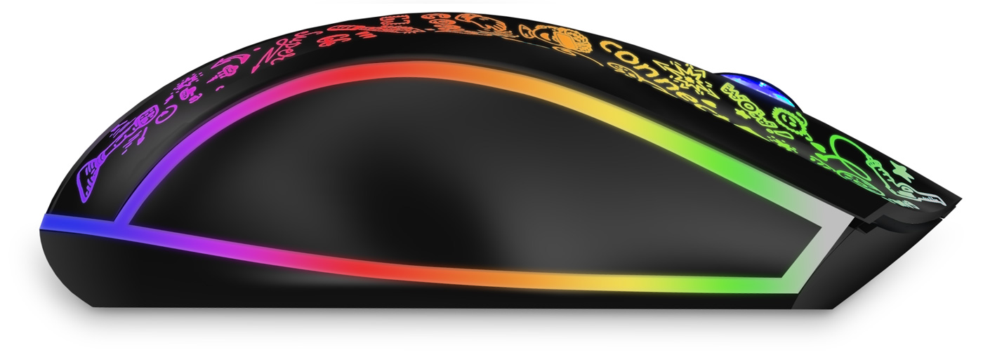 Technické údaje: Určena pro profesionální i amatérské hráče počítačových her; Rainbow LED podsvícení v celé ploše myši i rolovacího kolečka (pozvolné prodýchávání mixu 7 barev); Optický senzor PIXART 3212; Volitelná citlivost optického senzoru v 5 úrovních (800/1200/1600/2400/4800 DPI); Vysoká přesnost ideální také pro práci v grafických editorech; 5 programovatelných uživatelských profilů.