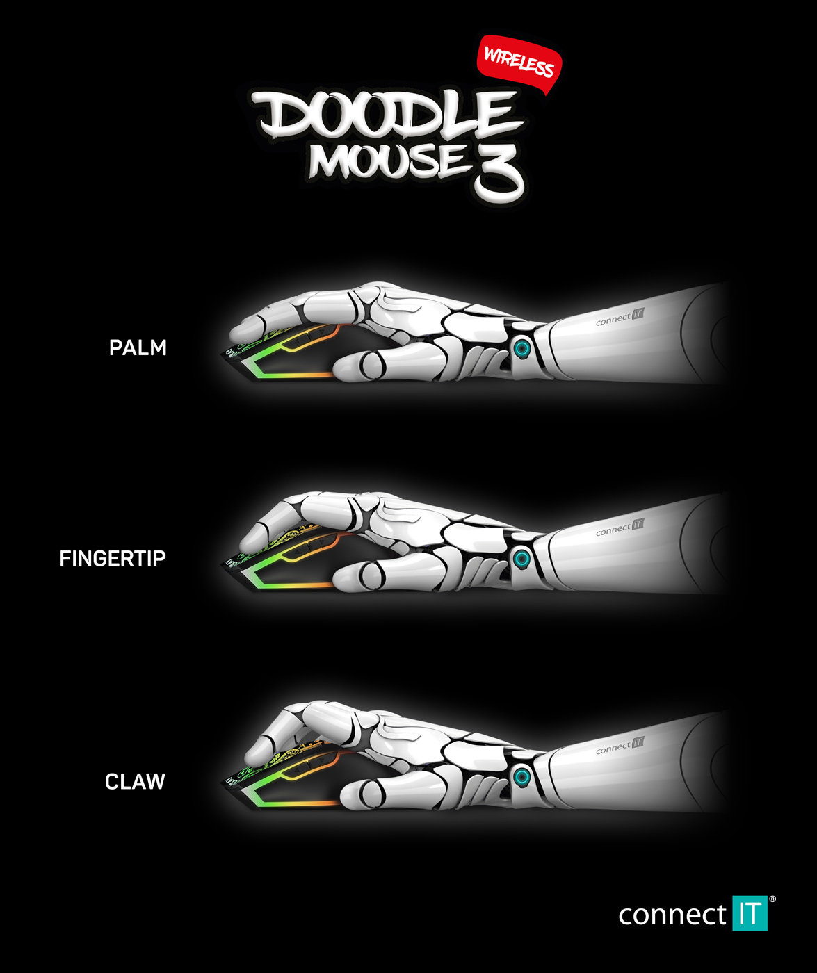 CONNECT IT DOODLE 3 bezdrátová herní myš - Černá
