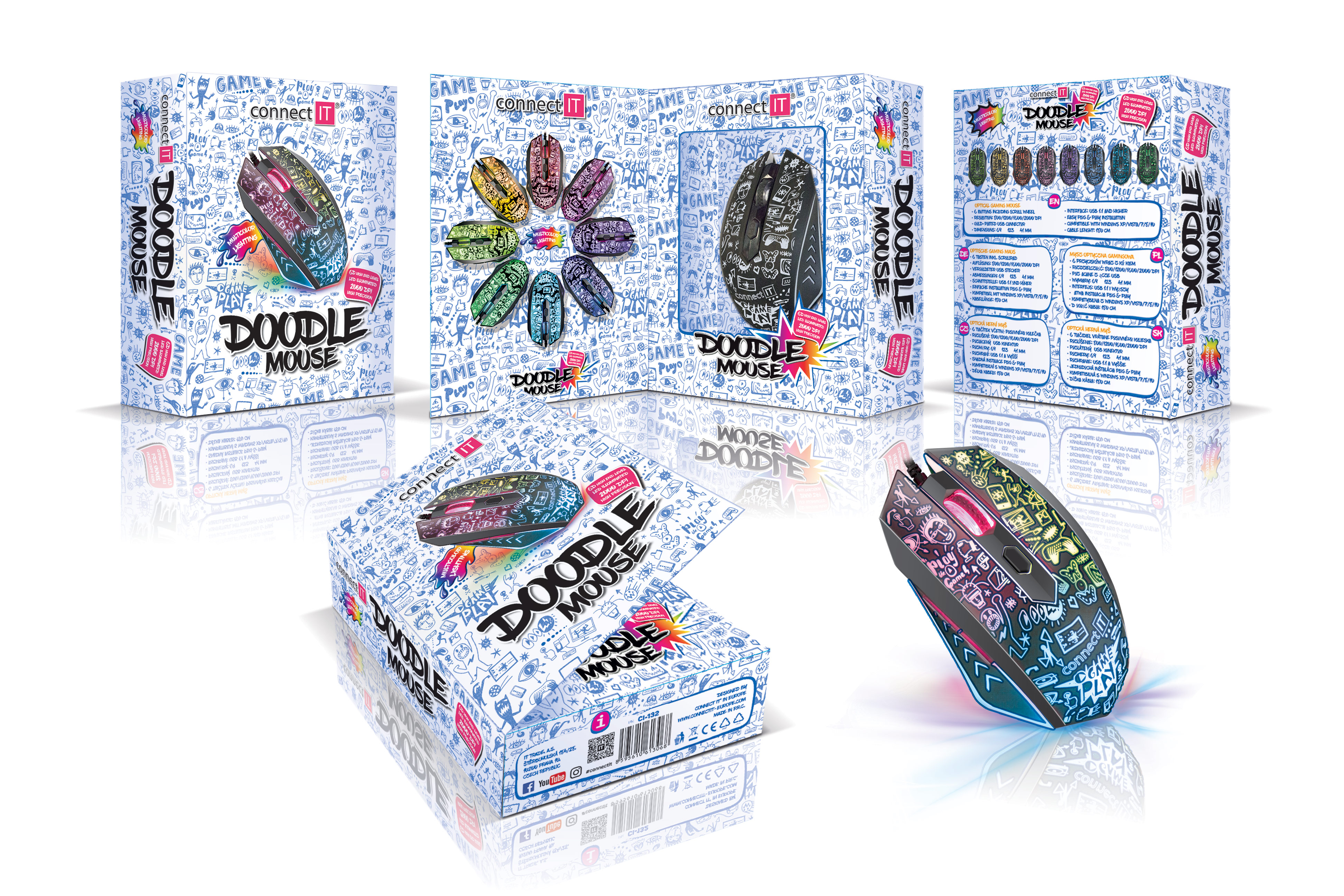 Klíčové vlastnosti: Drátová optická myš DOODLE edition pro hráče počítačových her i pro kancelářskou práci.