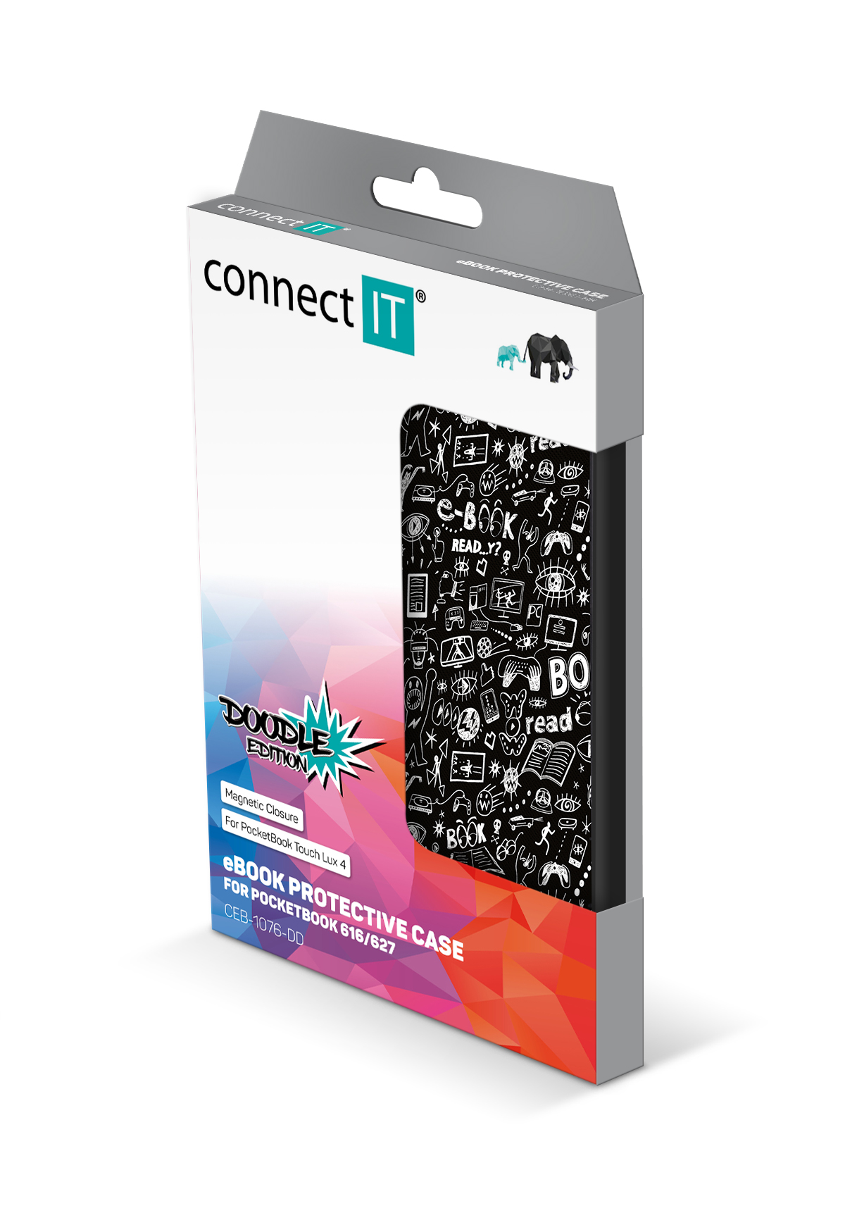 CONNECT IT Doodle pouzdro pro PocketBook 616/618/627/628/632, DOODLE - Černá