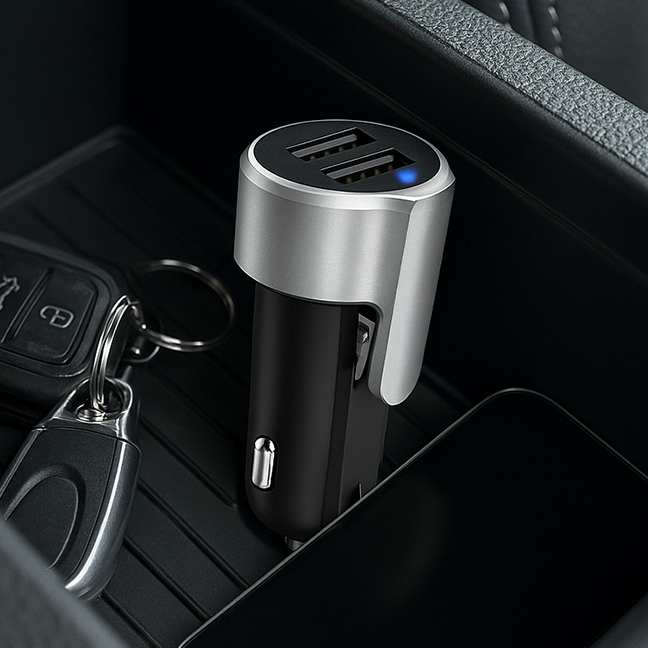 Klíčové vlastnosti: Dvouportová RescueSafe nabíječka do auta s hrotem na rozbití skla a skalpelem na rozřezání bezpečnostního pásu v případě nehody nebo nouze.