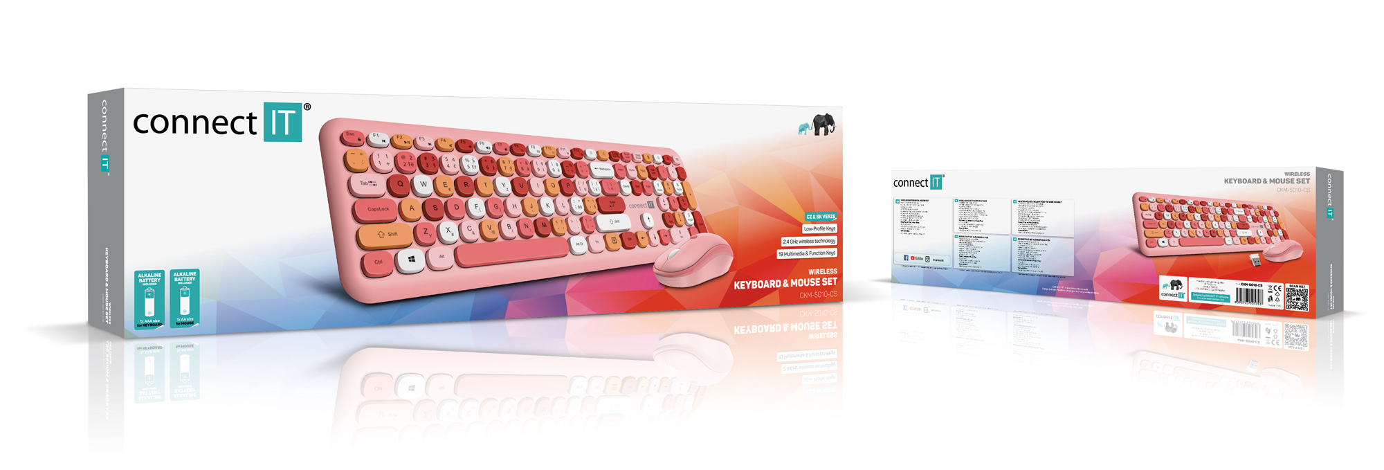 CONNECT IT FASHION combo bezdrátová klávesnice + myš, (+1x AAA +1x AA baterie zdarma), CZ + SK layout - Růžová