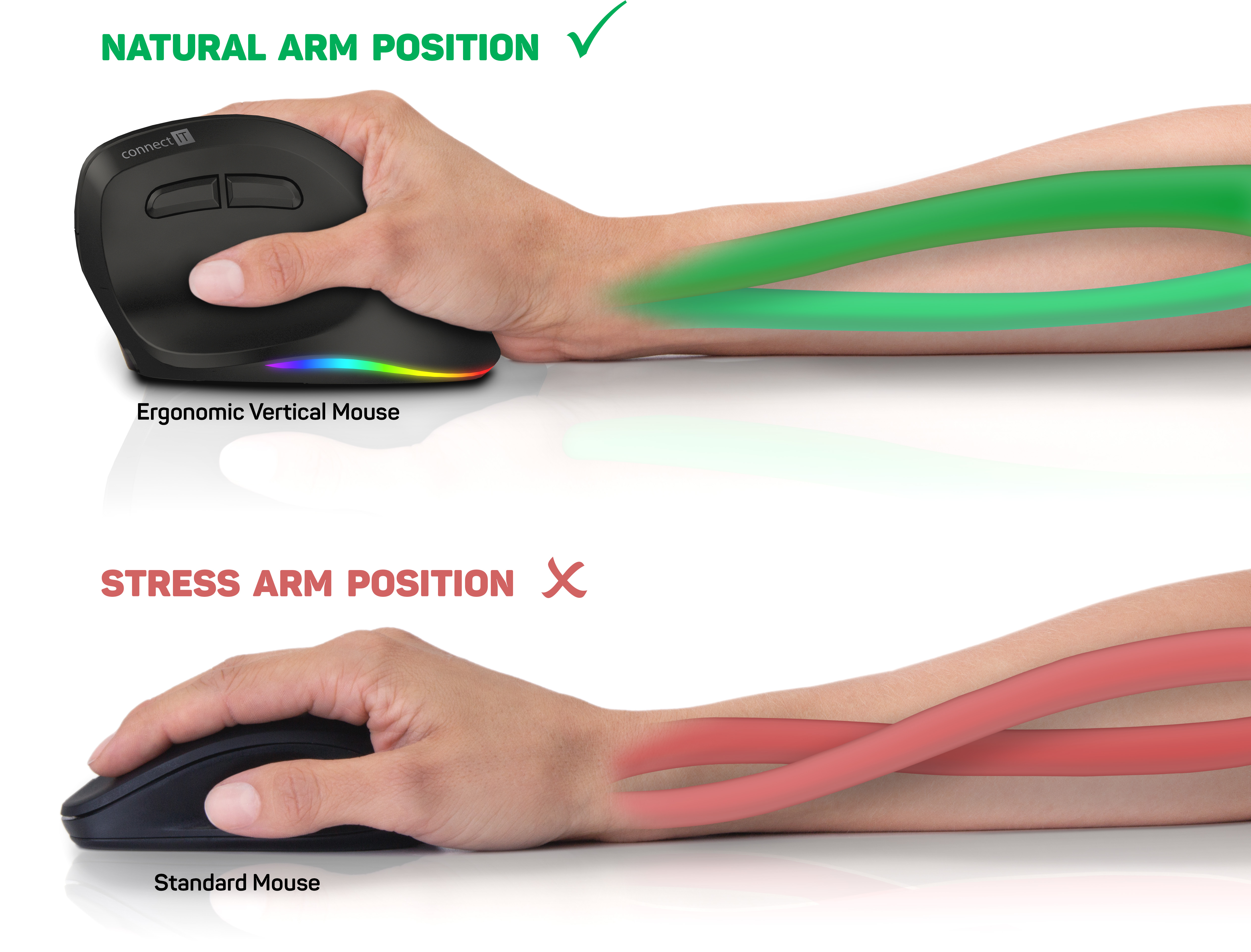 Technické údaje: Syndrom karpálního tunelu aneb syndrom počítačové myši - novodobý zdravotní problém; S používáním běžných kancelářských myší je spojena i novodobá počítačová nemoc - tzv. syndrom karpálního tunelu (tzv. útlakový syndrom nebo také RSI). Jde o útlak středního nervu v karpálním tunelu, který se nachází v zápěstí ruky. Střední nerv procházející právě tímto tunelem přenáší impulzy z mozku do palce, ukazováčku, prostředníčku a části prsteníčku. U zdravých lidí, kteří nepřetěžují oblast zápěstí, poskytuje karpální tunel dostatek prostoru pro průchod středního nervu a prsty jsou tak dostatečně zásobeny impulzy z mozku, tudíž zůstává zachována jejich plná funkčnost a citlivost; Mezi základní příznaky tohoto syndromu patří mravenčení a bolesti v prvních třech prstech (palec, ukazovák a prostředník) připomínajícím pocit přeležení ruky. Objevuje se také oslabená citlivost ruky projevující se sníženou schopností pevného stisku a nešikovnost ruky obecně (v konečné fázi vedoucí až k vypadávání předmětů z ruky). Symptomy se často projevují i v klidovém stavu a bolest může procházet až do předloktí a ramene. V počátečním stádiu je řešení jednoduché - okamžitě přestat používat běžnou počítačovou myš a ruku pravidelně procvičovat. V pokročilém stádiu je již nutná endoskopická operace v zápěstí, kdy dochází k uvolnění karpálního tunelu, resp. zvýšení jeho průchodnosti. Při plně rozvinutém syndromu je nutné přetnutí zápěstních vazů, čímž se tlak na nerv odstraní; Podle Státního zdravotnického ústavu (SZÚ) se v Česku jedná o nejčastější nemoc z povolání a každým rokem nemocných přibývá; Vhodná pro domácí i kancelářské profesionální použití; Speciálně upravená konstrukce spínačů tlačítek pro absolutně tichý a měkký chod (při klikání nevydává žádný zvuk).