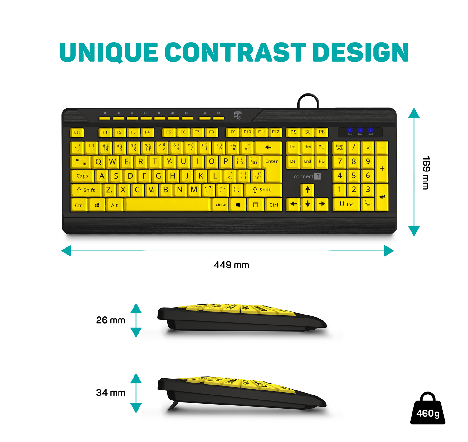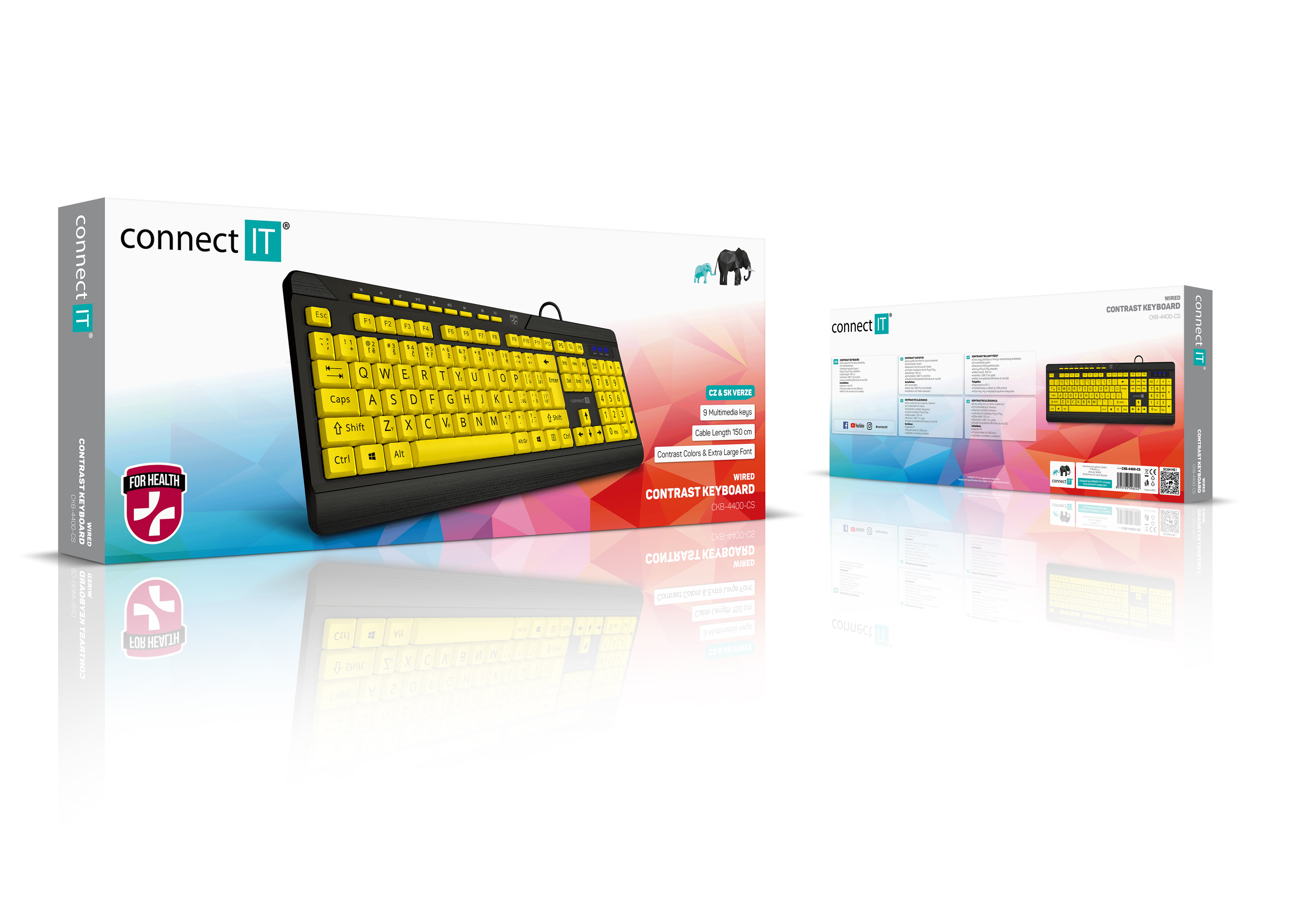 CONNECT IT FOR HEALTH CONTRAST klávesnice s velkým fontem, CZ + SK verze - Žlutá a černá