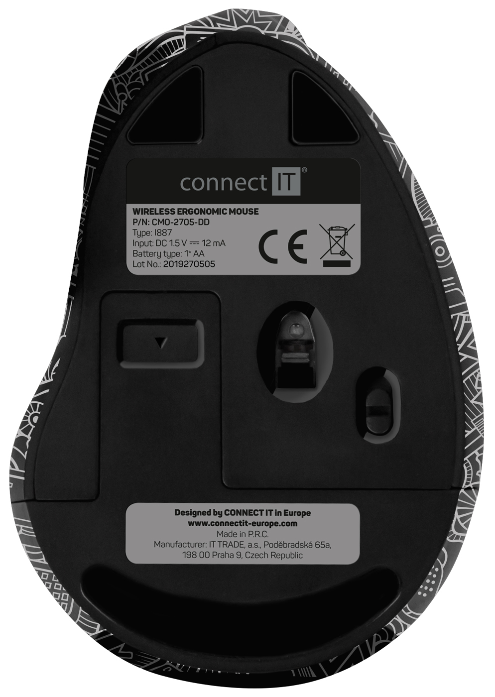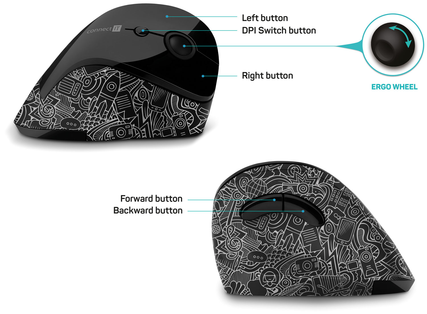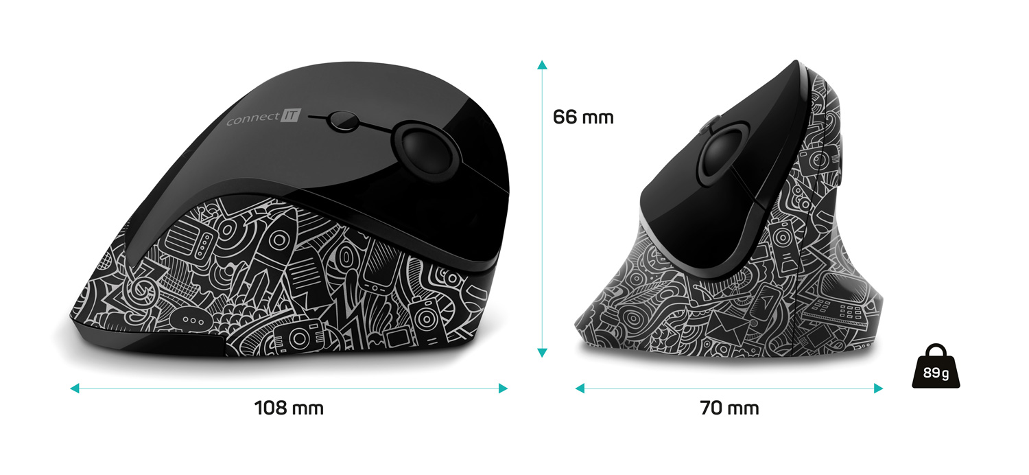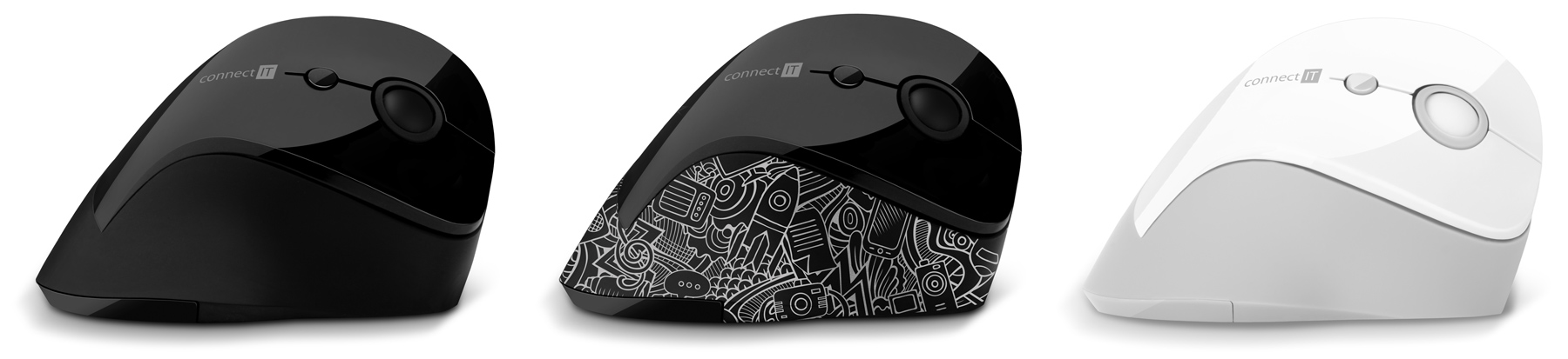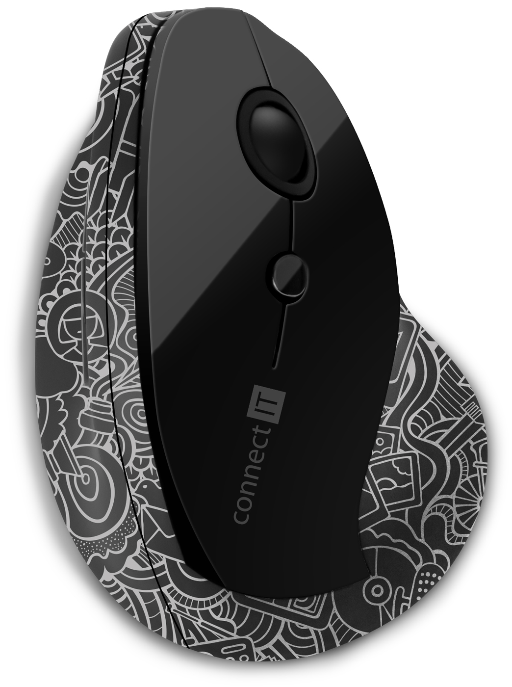 CONNECT IT FOR HEALTH DOODLE ergonomická vertikální myš, (+ 1x AA baterie zdarma), bezdrátová - Černá