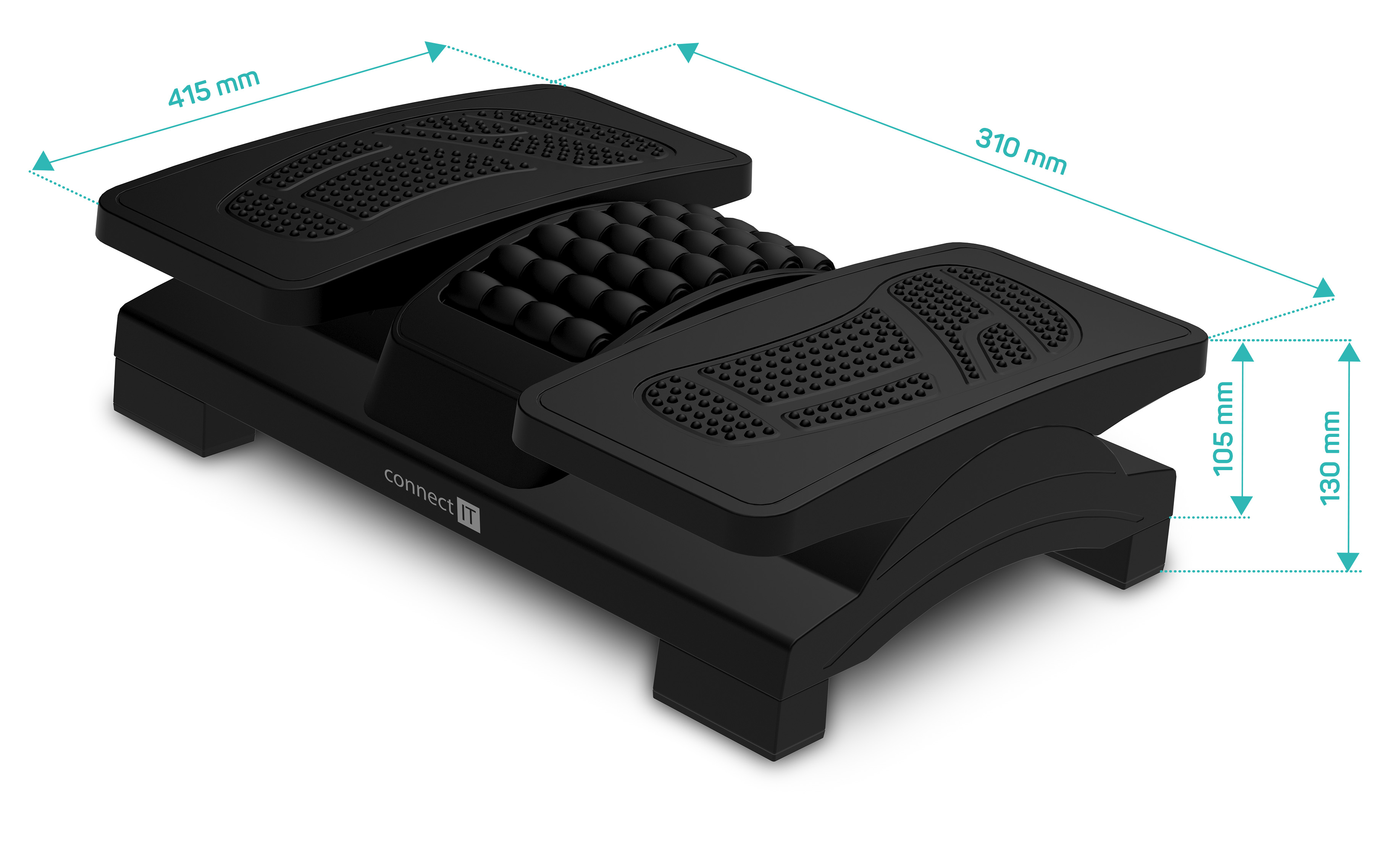 Technické údaje: Nastavitelná výška a úhel pro maximální pohodlí a komfort; Masážní texturovaný povrch pro unavené nohy; Masážní válečky pro příjemnou masáž chodidel; Protiskluzové podložky pro vetší stabilitu; Celkový rozměr: 415 x 310 x 105 (130) mm; Podložka pod nohy.