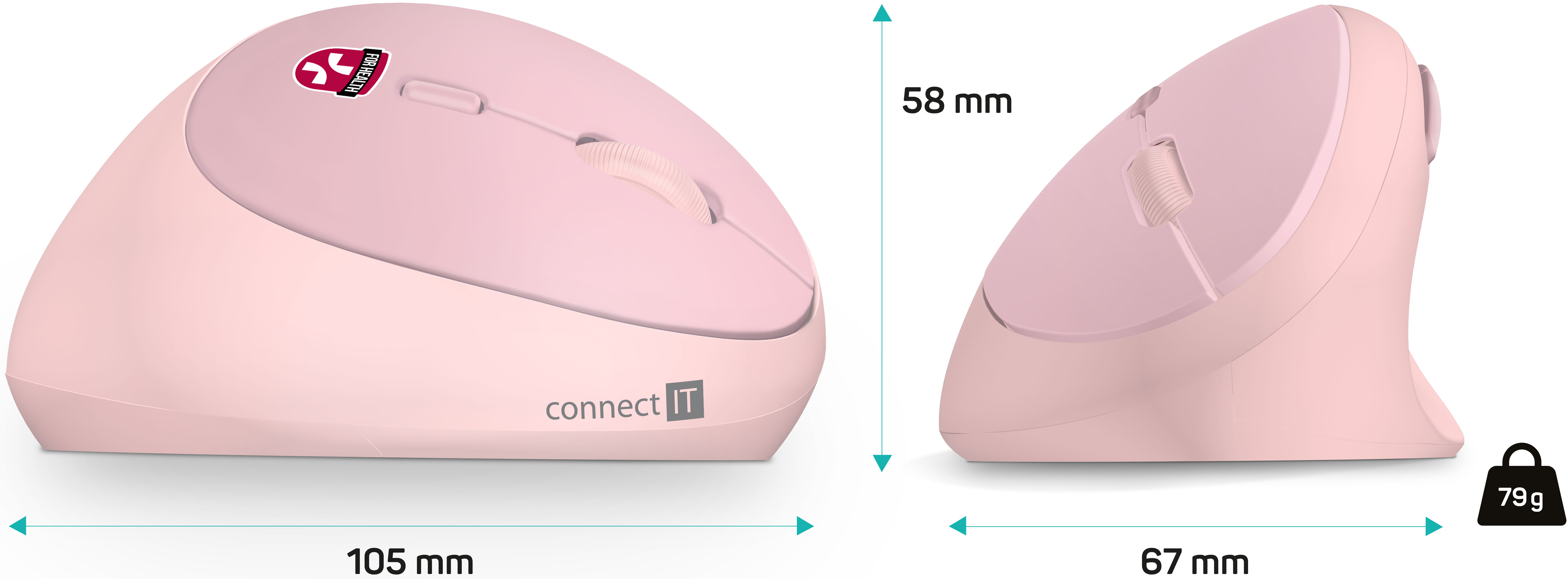 CONNECT IT FOR HEALTH LADIES ergonomická vertikální myš, bezdrátová - Růžová