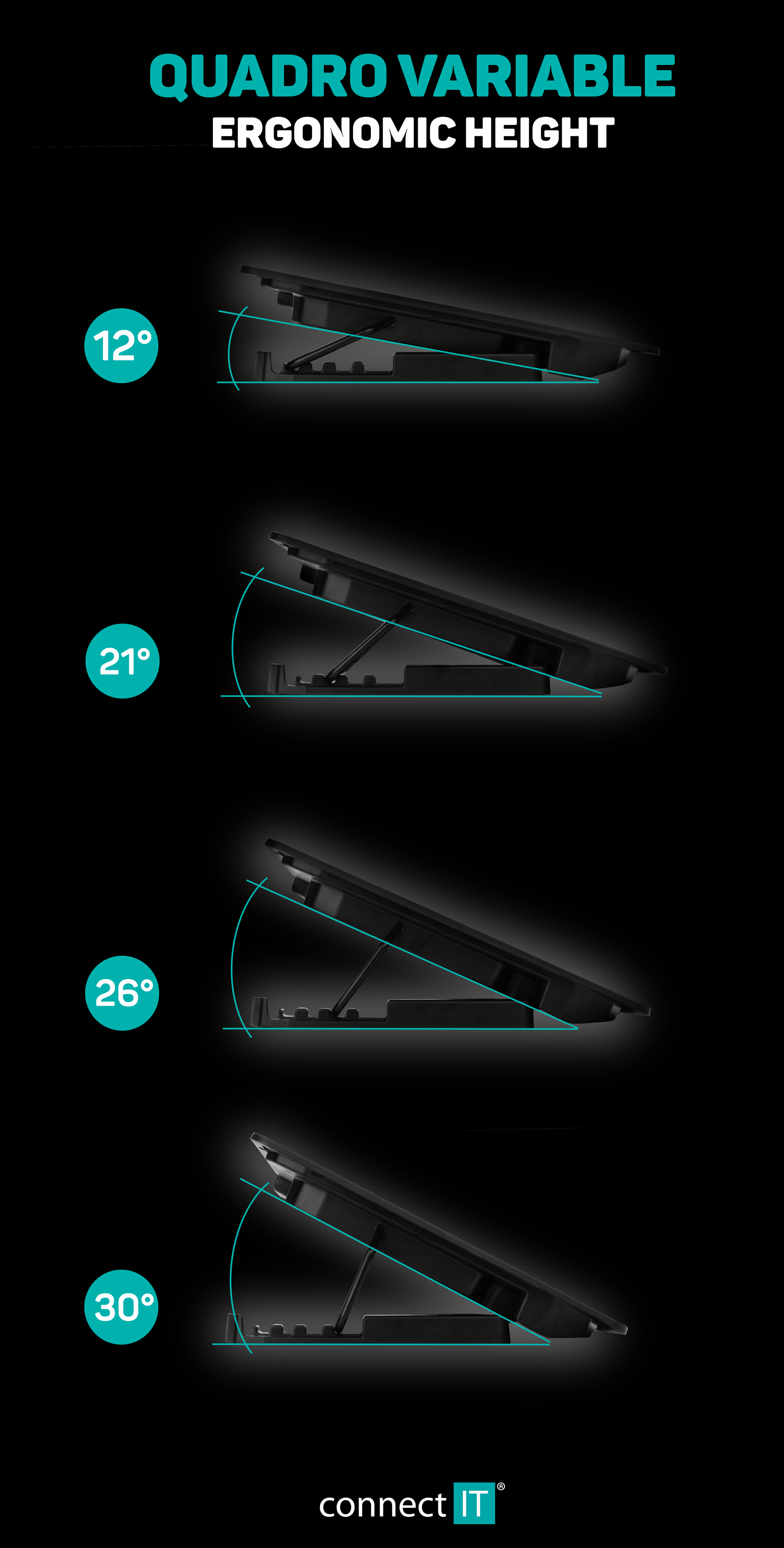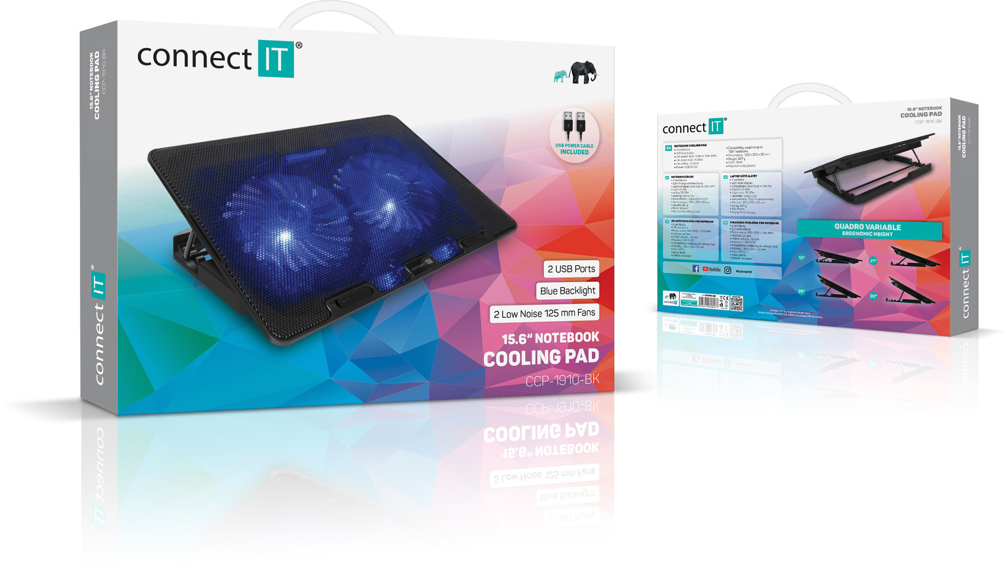 Klíčové vlastnosti: Chladicí podložka pod notebook CONNECT IT "FrostBreeze" CCP-1910-BK, která vybavená dvěma ventilátory s modrým LED podsvícením, celokovovou chladící mřížkou a výškovým čtyřstupňovým polohováním. Kompatibilní s notebooky do 15,6".