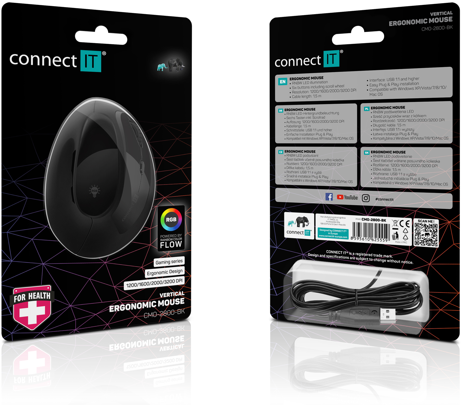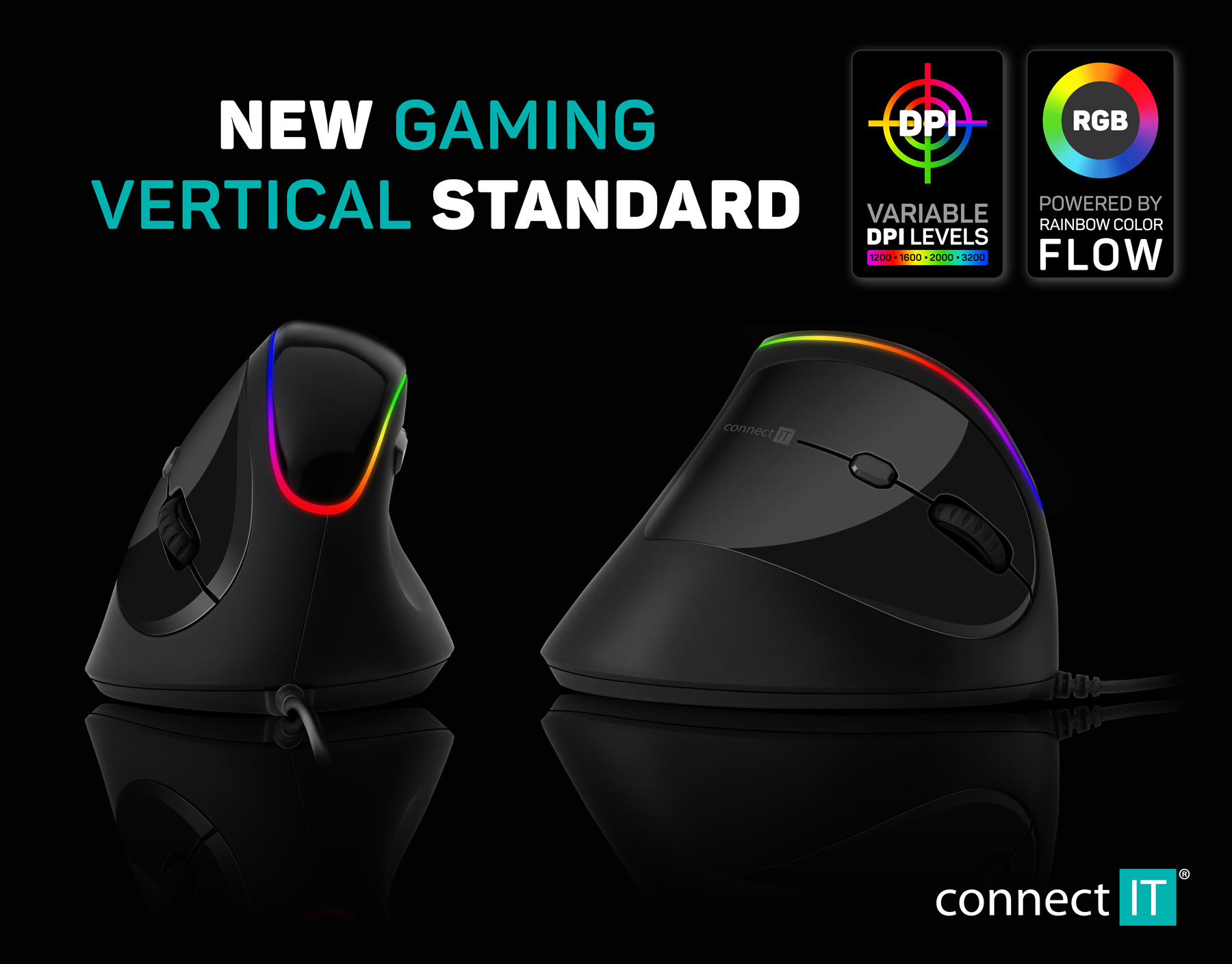CONNECT IT GAME FOR HEALTH RGB ergonomická vertikální myš, drátová - Černá
