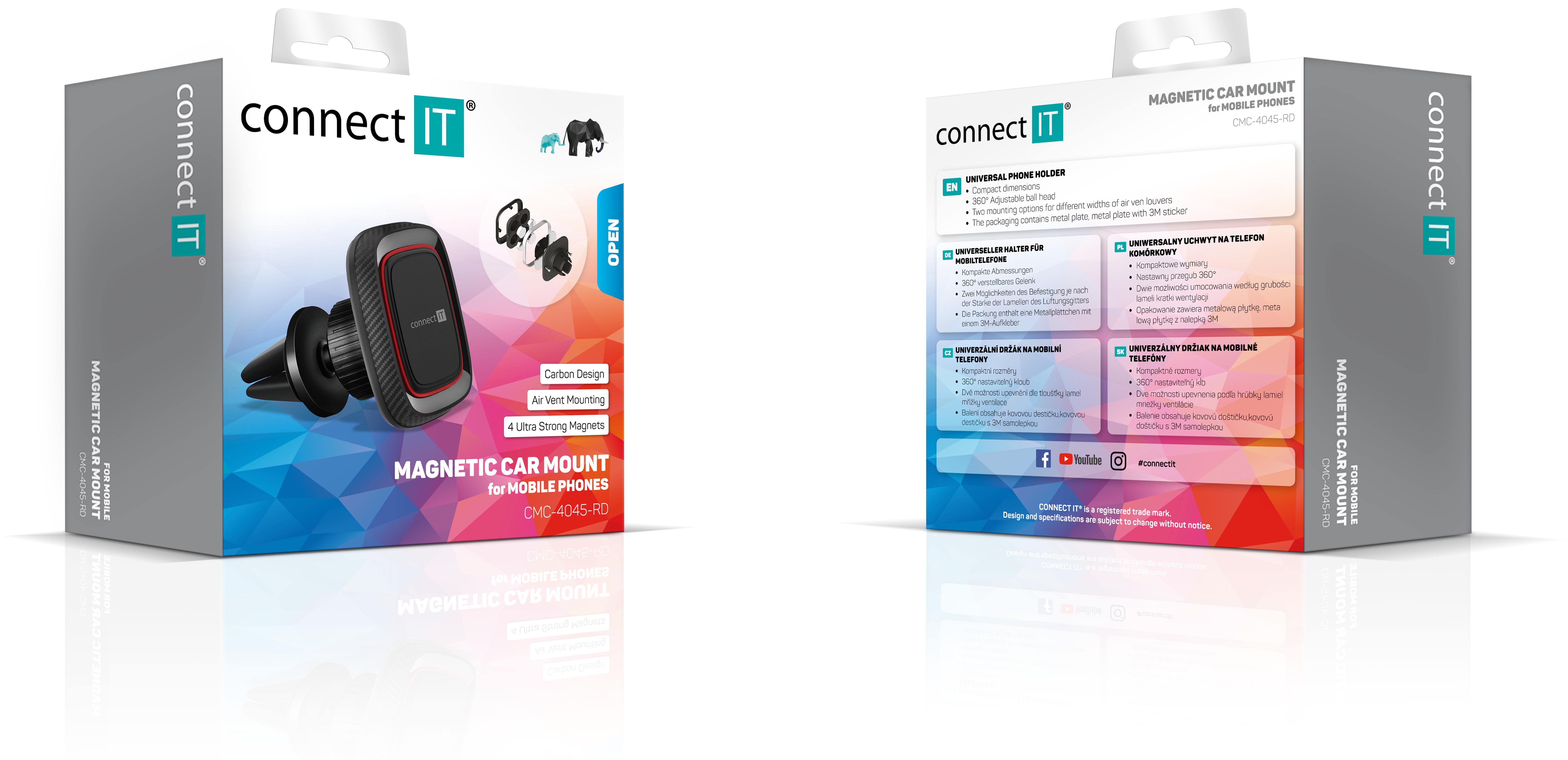 CONNECT IT InCarz 4Strong360 CARBON univerzální magnetický držák do auta, 4 magnety - Červená
