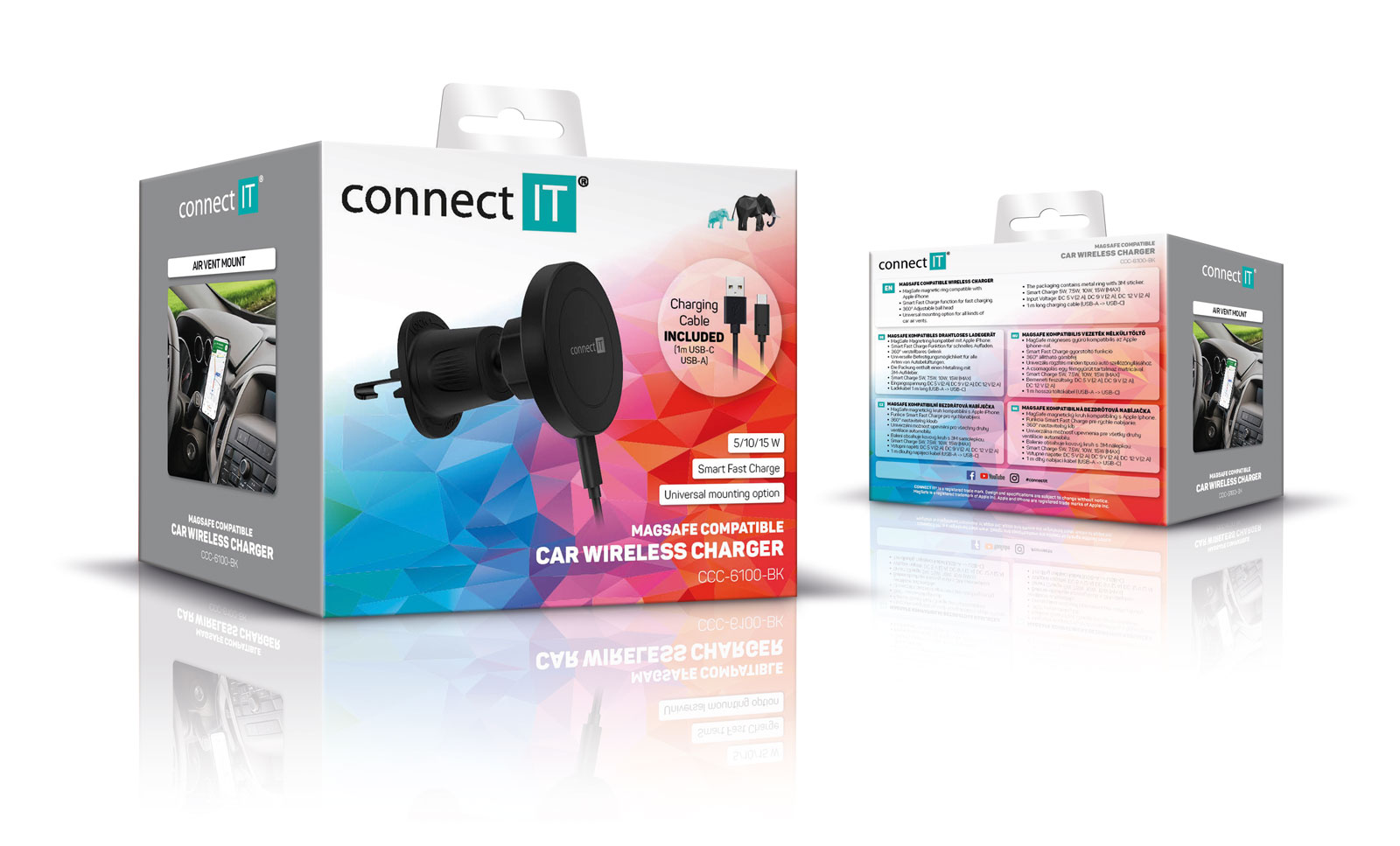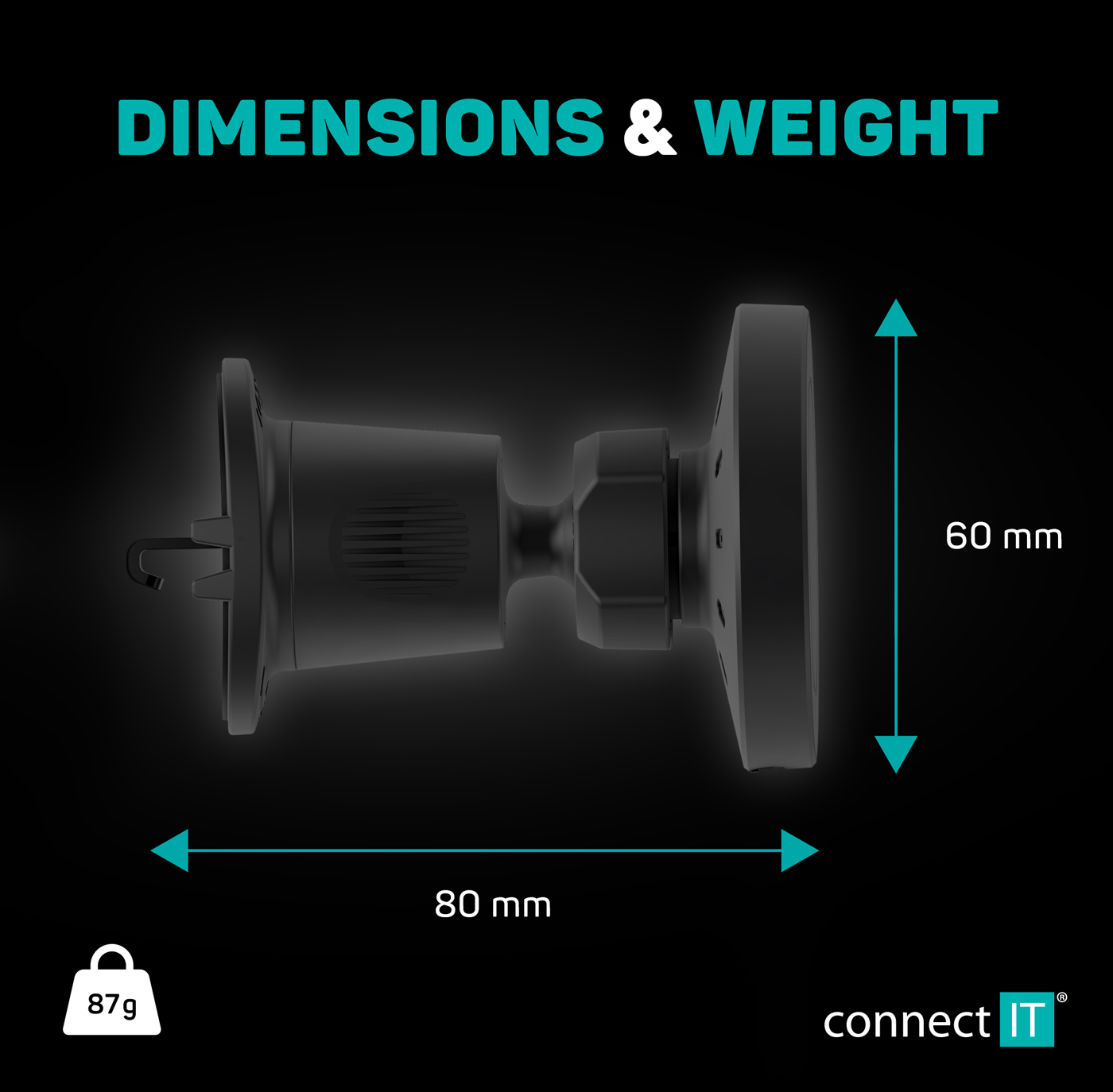 Technické údaje: Bezdrátové nabíjení (telefon stačí pouze položit na nabíječku); Integrovaný magnetický kruh MagSafe pro nabíjení Apple iPhone; Kompatibilní se všemi mobilními telefony s Magsafe bez rozdílu velikosti, úhlopříčky a hmotnosti; Podpora 15 W rychlonabíjení Qi Fast-Charge (1,4x rychlejší nabíjení v porovnání se standardními bezdrátovými nabíječkami ušetří až 50 minut času); Podpora všesměrového položení mobilního telefonu na nabíječku; Inteligentní obvod Smart IC detekuje proudovou potřebu připojených zařízení a automaticky přerozděluje proud s cílem nabíjení nejrychlejším možným způsobem.