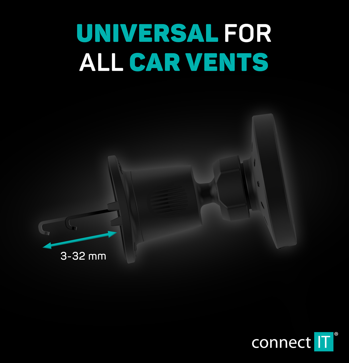 Výhody produktu: Bezdrátové nabíjení umožňuje nabíjet telefon pouhým položením na nabíječku, tedy bez nutnosti připojování napájecího kabelu do telefonu. Funguje na principu elektromagnetické indukce mezi dvěma cívkami, přičemž jedna cívka se nachází v telefonu samotném a druhá v bezdrátové nabíječce. Pozice ve větrací mřížce splňuje bezpečnostní podmínky pro umístění mobilního telefonu v automobilu, kdy telefon nebrání řidiči ve výhledu. Instalace je velmi jednoduchá - postačí pouze zasunout aretační hák do větrací mřížky a utáhnout pomocí aretačního kolečka. Pak už stačí telefon jen přiblížit jeho zadní stranou k držáku a vlivem magnetické síly se sám připevní k držáku. Stabilita telefonu je totožná jak ve vertikální, tak v horizontální poloze.