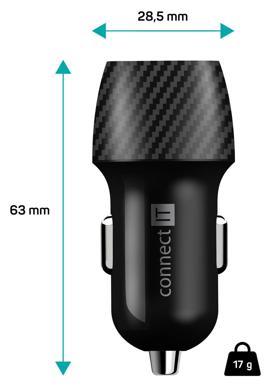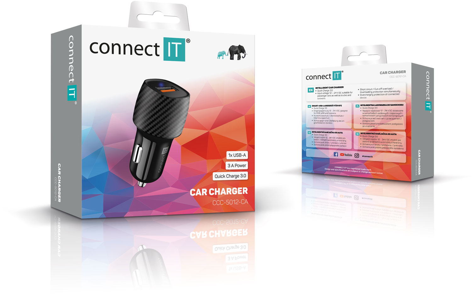 CONNECT IT InCarz QUICK CHARGE 3.0 nabíječka do auta, 1x USB-A, 3 A - Carbon