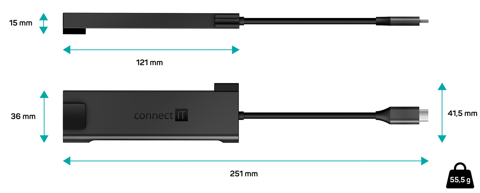 CONNECT IT Multi5in1 USB-C hub, 5v1 (USB-C,2xUSB-A,HDMI,RJ45),externí - Antracitová