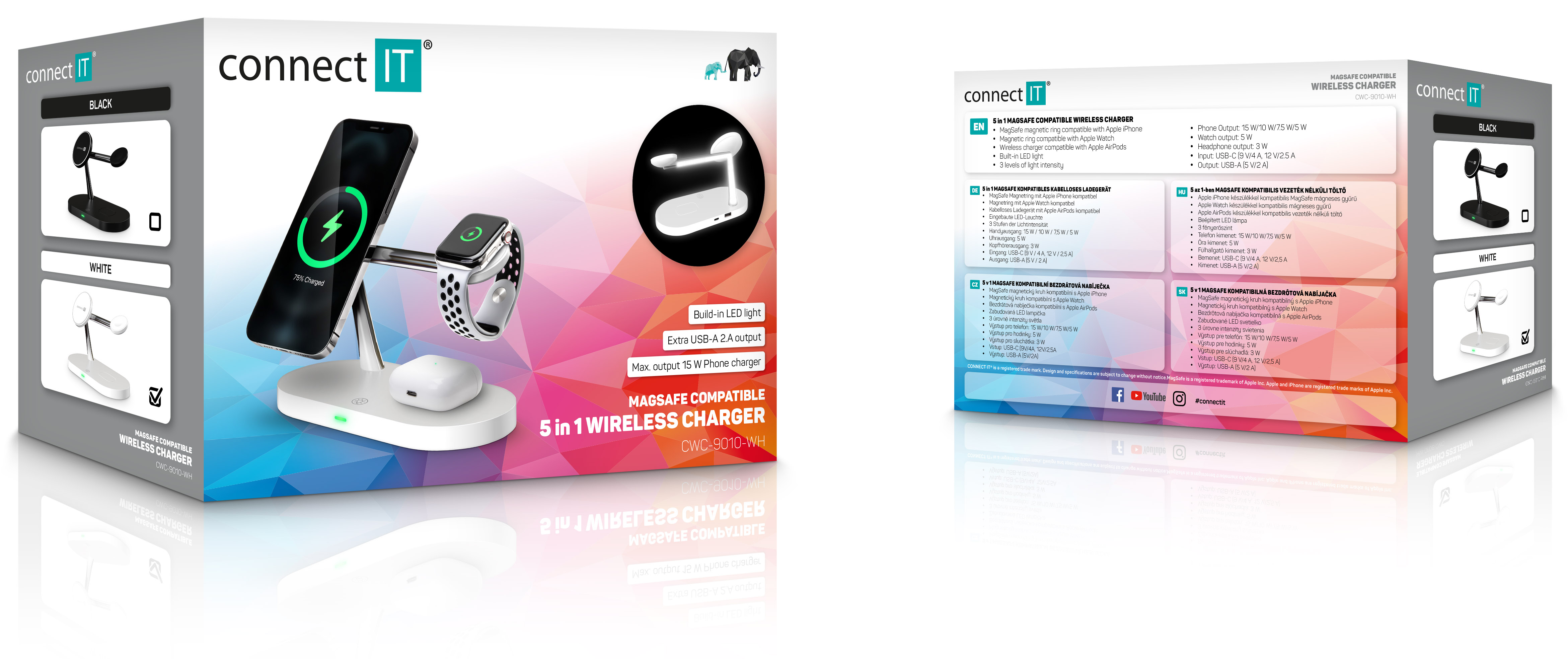 CONNECT IT MultiCharge 5 v 1 MagSafe Wireless Fast Charge bezdrátová nabíječka - Bílá