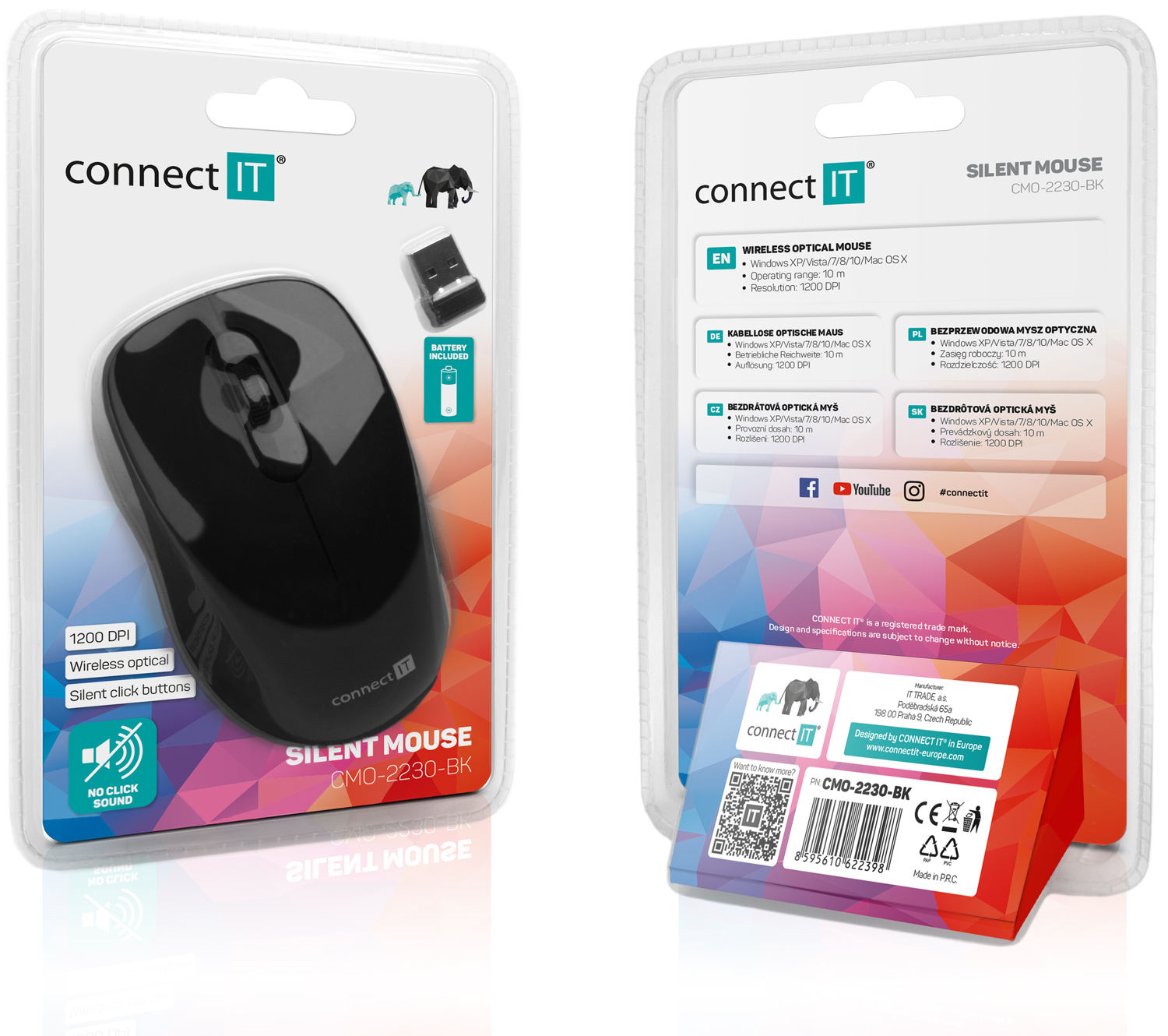 Klíčové vlastnosti: Bezdrátová optická myš CONNECT IT "Mute" s tichým chodem tlačítek, které při klikání nevydávají žádný zvuk najde své uplatnění všude tam, kde uživatel vyžaduje absolutní soukromí a klid.. Myš neruší uživatele ani své okolí nepříjemným hlasitým klikáním známým z běžných modelů počítačových myší.