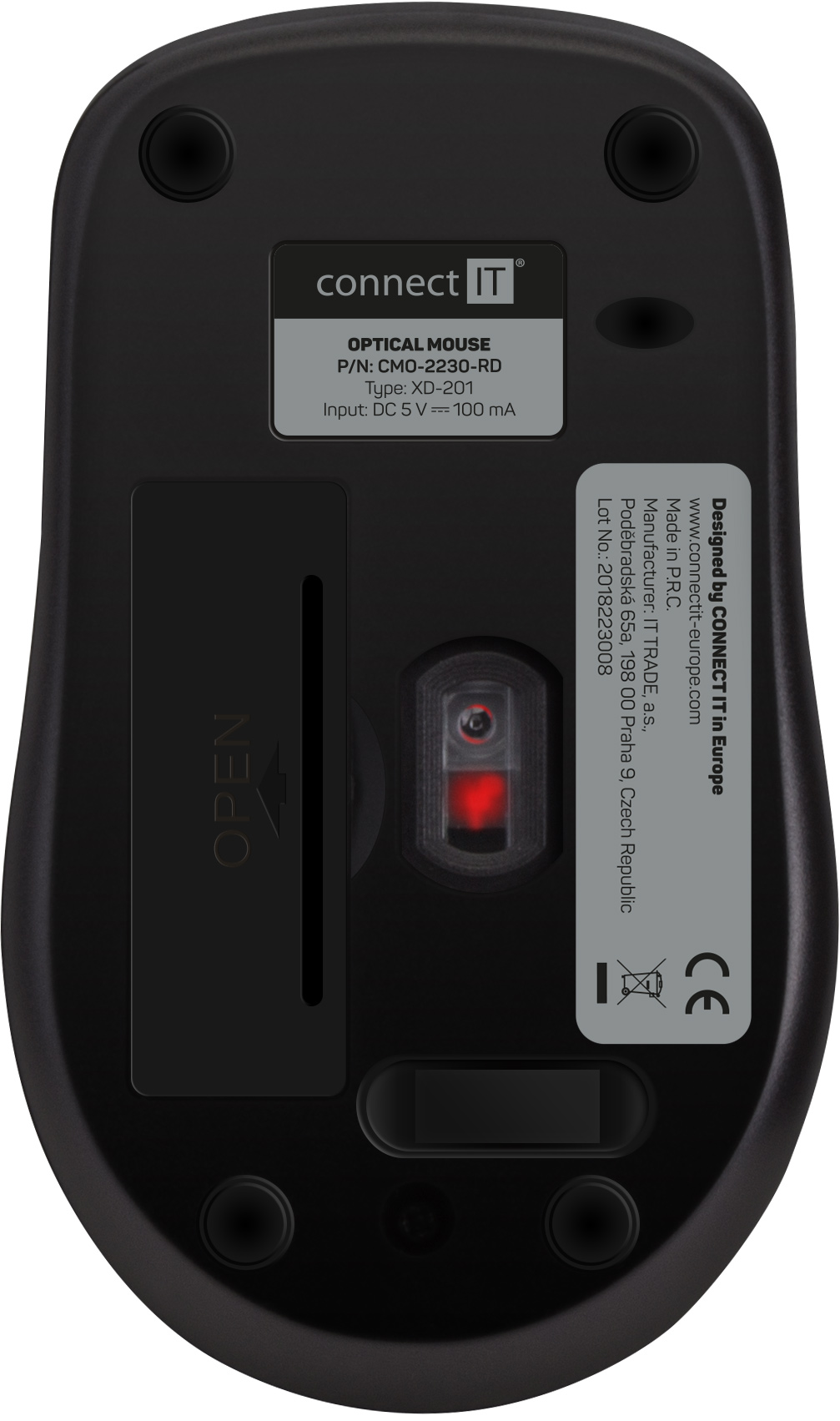 CONNECT IT "MUTE" bezdrátová optická tichá myš, USB, (+ 1x AA baterie zdarma) - Červená