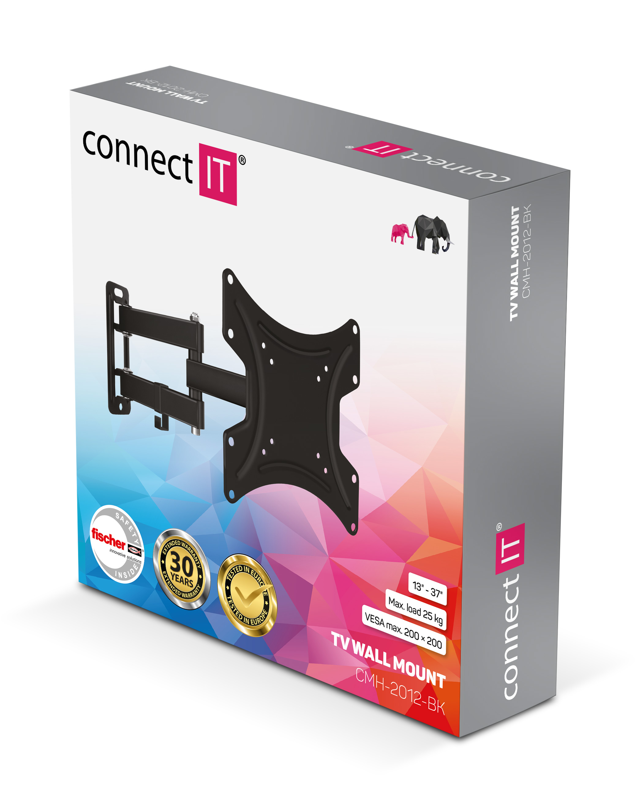 Klíčové vlastnosti: TV držáky značky CONNECT IT se svou pověstnou kvalitou a šířkou nabídky řadí mezi současnou špičku v oboru. Záruka na vybrané modely je 30 let. Vyznačují se kvalitními materiály, precizním dílenským zpracováním a snadnou montáží. Nesetkáte se u nich s vůlí v kloubech ani nepříjemným vrzáním. Součástí balení každého držáku je sada SX hmoždinek renomované německé značky FISCHER umožňující kotvení do betonu, pórobetonového zdiva, plného, ale i děrovaného zdiva. Všechny TV držáky jsou testovány na trojnásobek uváděné nosnosti.