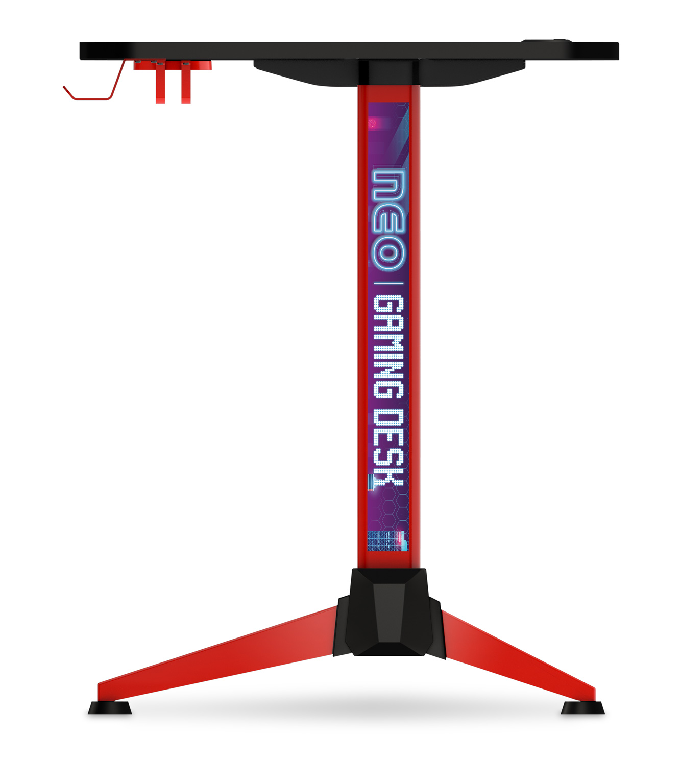 Výhody produktu: V zadní části stolu naleznete průchodky pro snadné vedení kabelů. Ke stolu je dodáván držák na pití a na sluchátka a samozřejmostí jsou také samolepky s logem NEO k nalepení na nohy stolu.