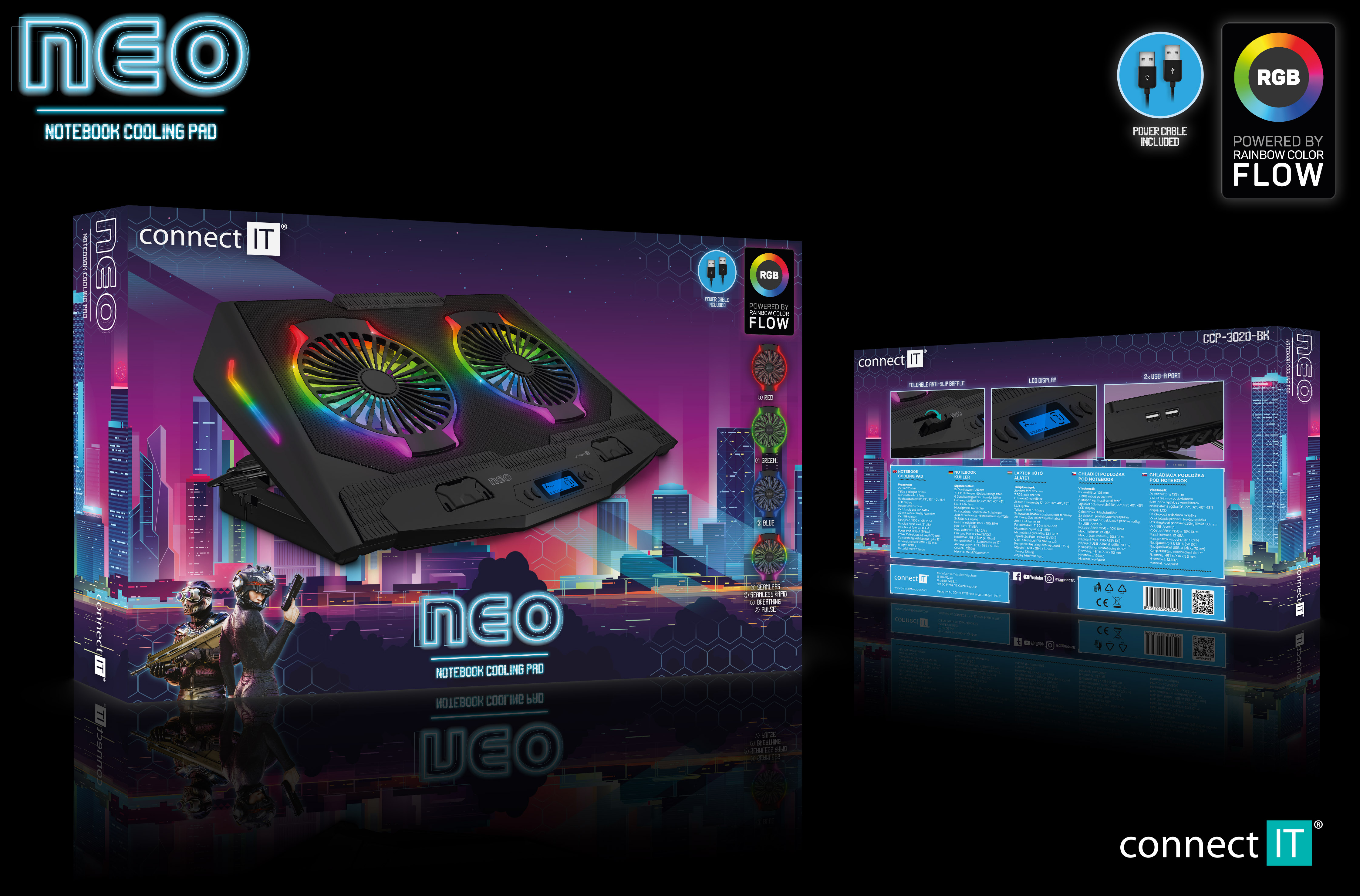 CONNECT IT NEO RGB chladicí podložka pod notebook - Černá