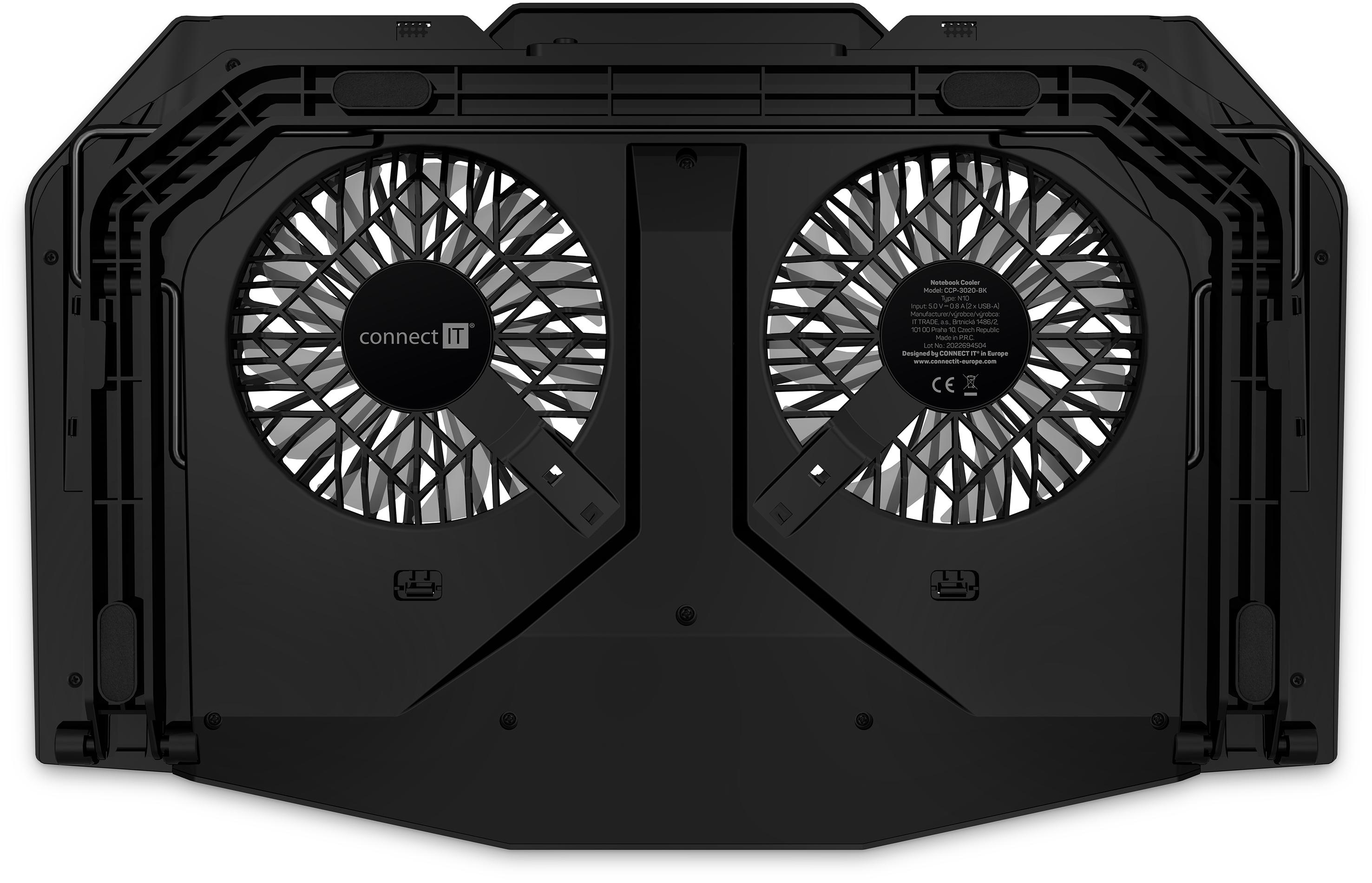 Výhody produktu: Podložka zajišťuje jak odvod tepla z notebooku a jeho ventilačních otvorů, tak i přímé ochlazování pláště notebooku díky cirkulaci chladného vzduchu a celkově tak zvyšuje výkon notebooku. Je plně kompatibilní s notebooky až do velikosti 17" a je předurčena jak pro práci doma tak i v kanceláři. Ultratichý chod 2 ventilátorů vás nebude rušit ani při nejnáročnější práci vyžadující maximální soustředění. Výšková polohovatelnost v 5 různých stupních vám zajišťuje maximální pohodlí i při delších pracovních či herních sezeních.