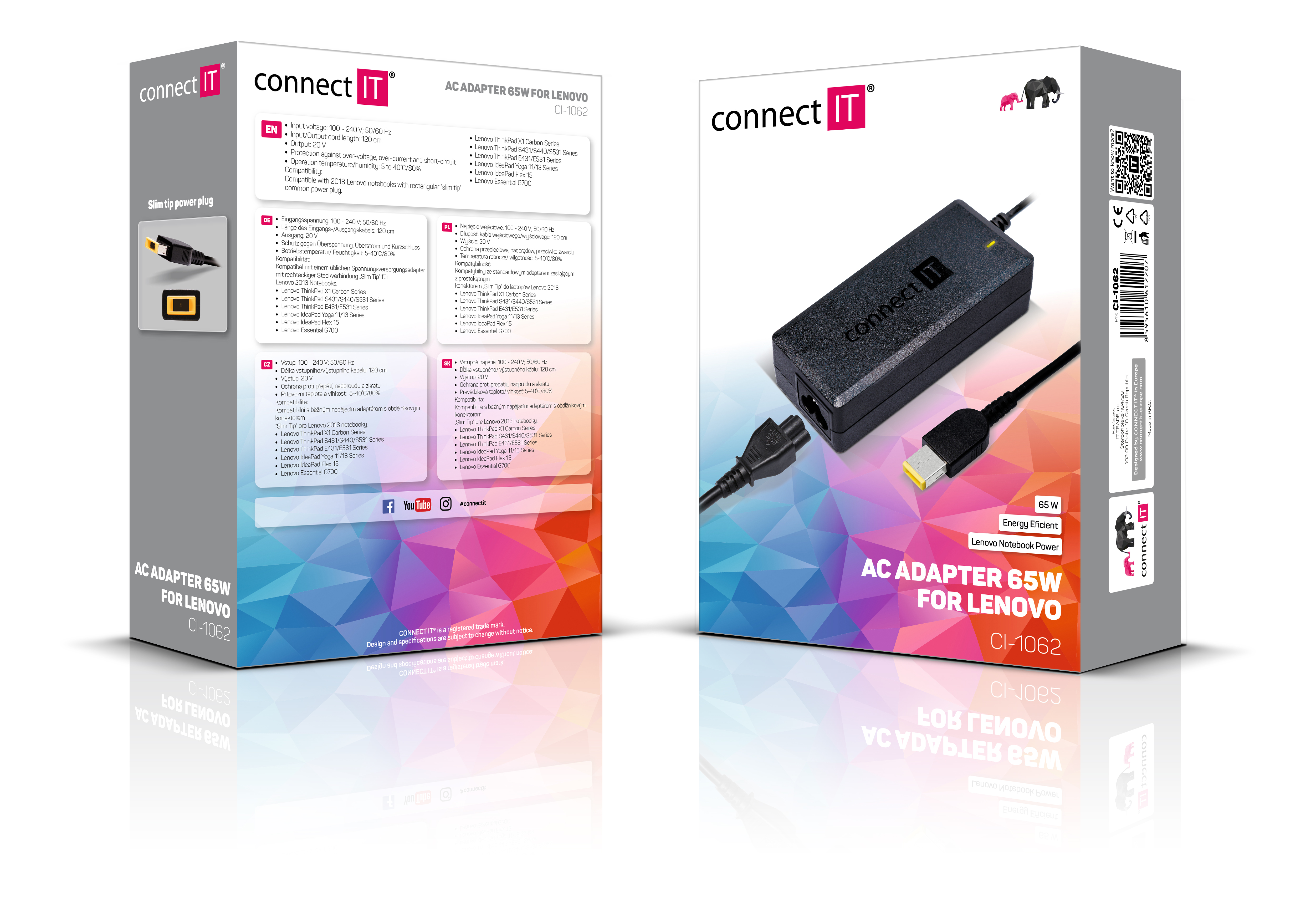 Klíčové vlastnosti: CONNECT IT Notebookový adaptér Lenovo 65W. Univerzální napájecí adaptér pro notebooky Lenovo. Správnou funkci adaptéru signalizuje LED kontrolka. Adaptér je vybaven ochranami proti přepětí, nadproudu a zkratu, které brání poškození vašeho notebooku a díky svým kompaktním rozměrům jej můžete vzít vždy s sebou a napájet svůj notebook kdykoliv budete potřebovat.
