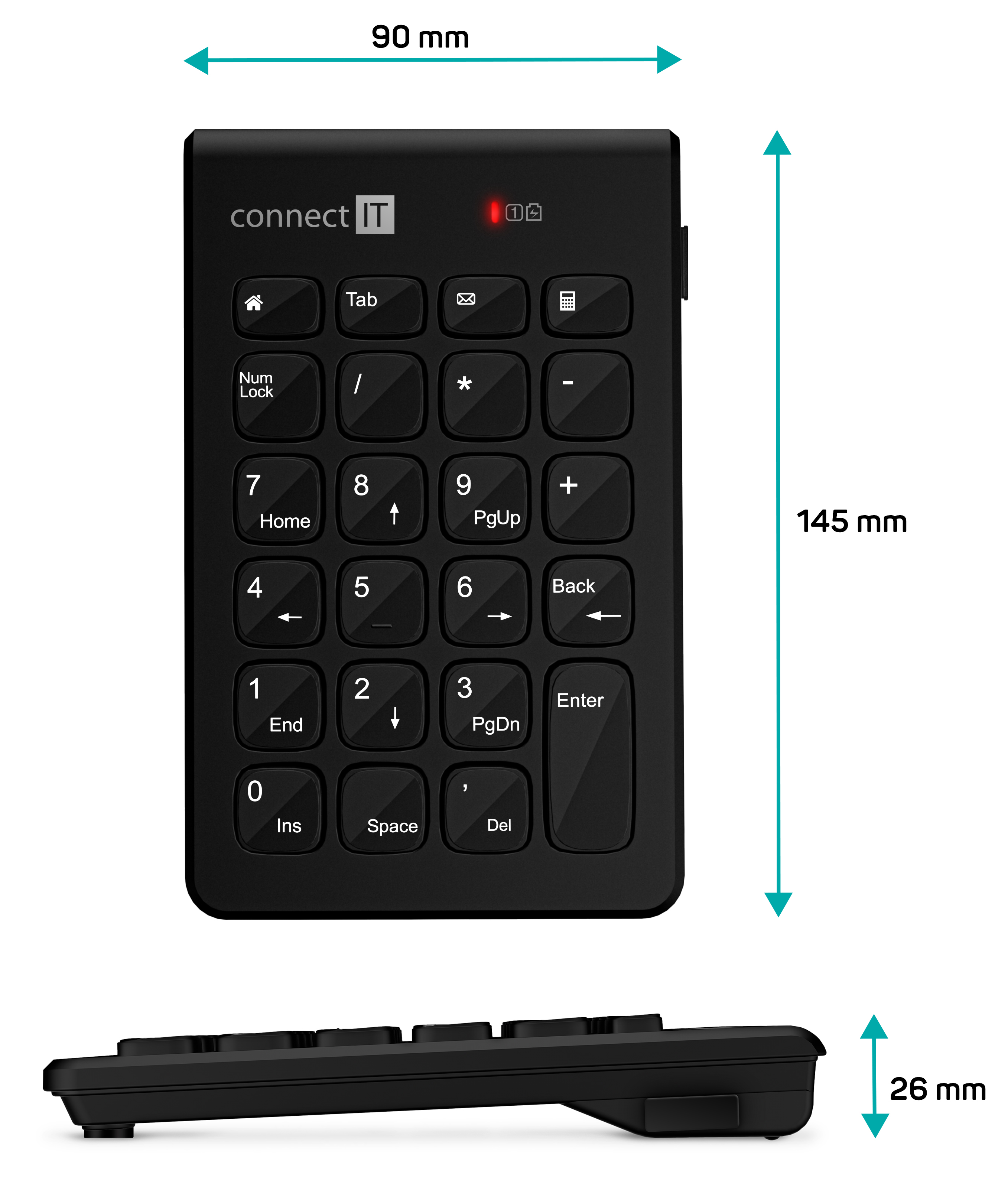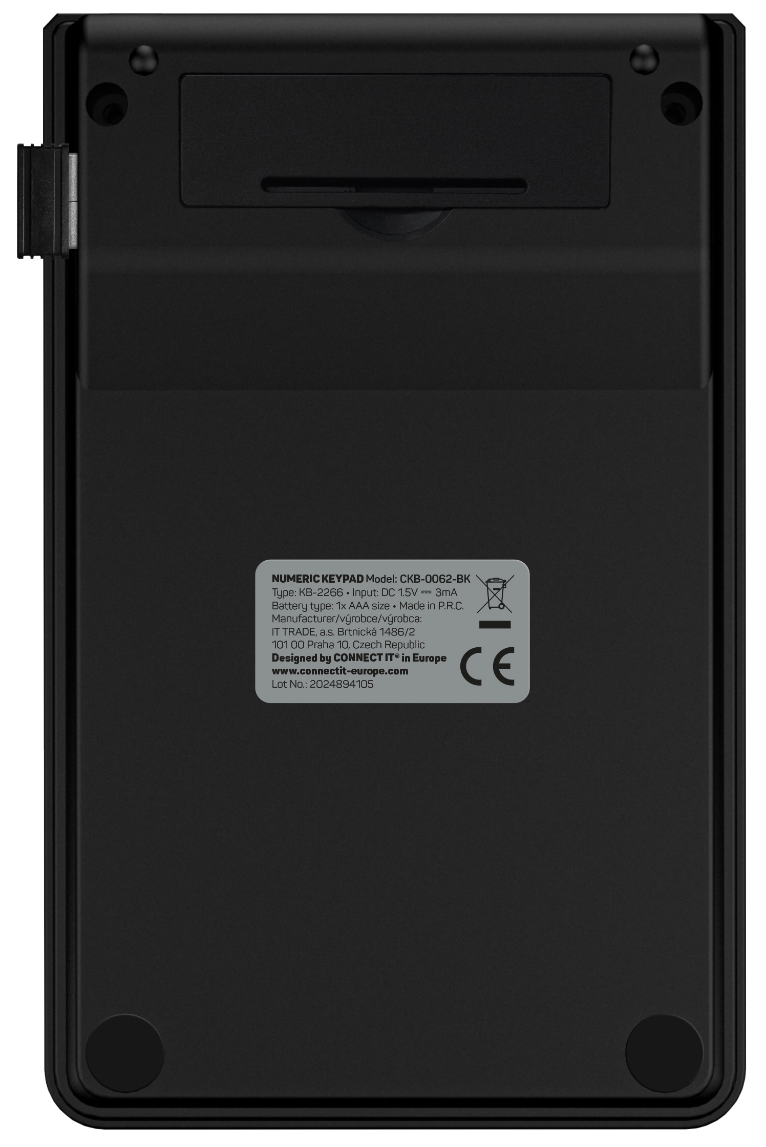 CONNECT IT NumCALC bezdrátová numerická klávesnice, (+ 1x AAA baterie zdarma) - Černá