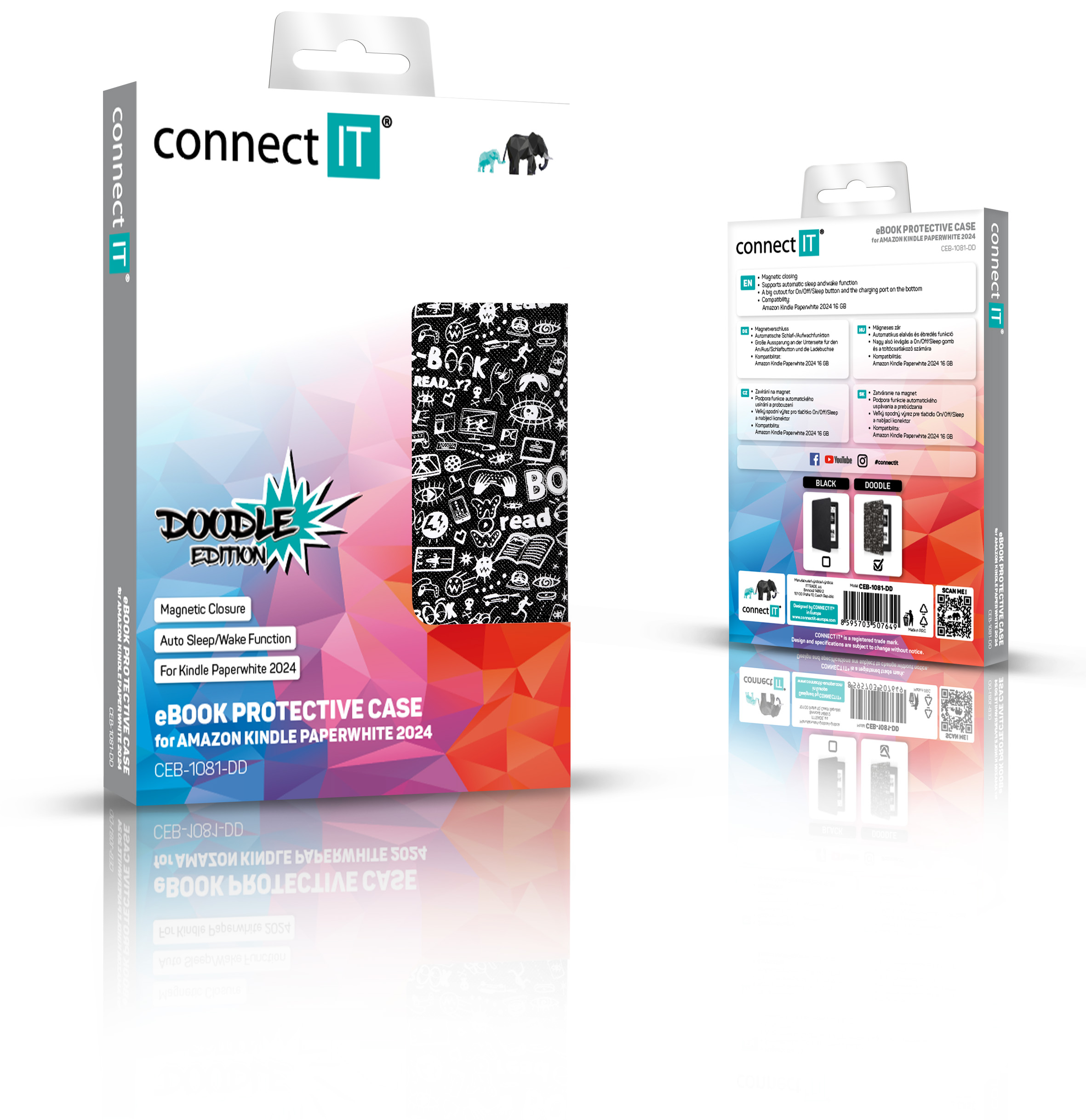 CONNECT IT pouzdro pro Amazon Kindle Paperwhite 2024 DOODLE - Barevná