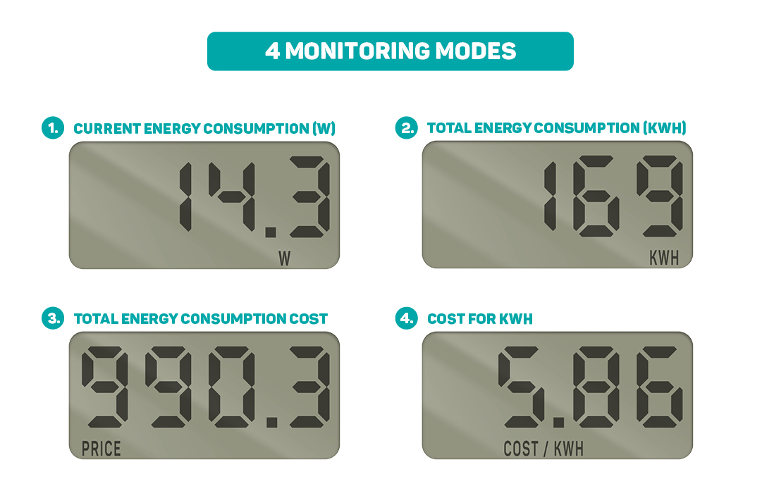 Výhody produktu: Měřič spotřeby elektrické energie dokáže vypočítat odpovídající finanční náklady a odhalit, který spotřebič odebírá nejvíce elektrické energie a jeho provoz je tedy nejnákladnější. Mezi další funkce měřiče patří měření okamžitého odebíraného výkonu. Tyto informace Vám mohou přispět ke snížení nákladů za elektrickou energii. Měřič je vybaven interní pamětí pro uložení nastavení a údajů v přístoji.