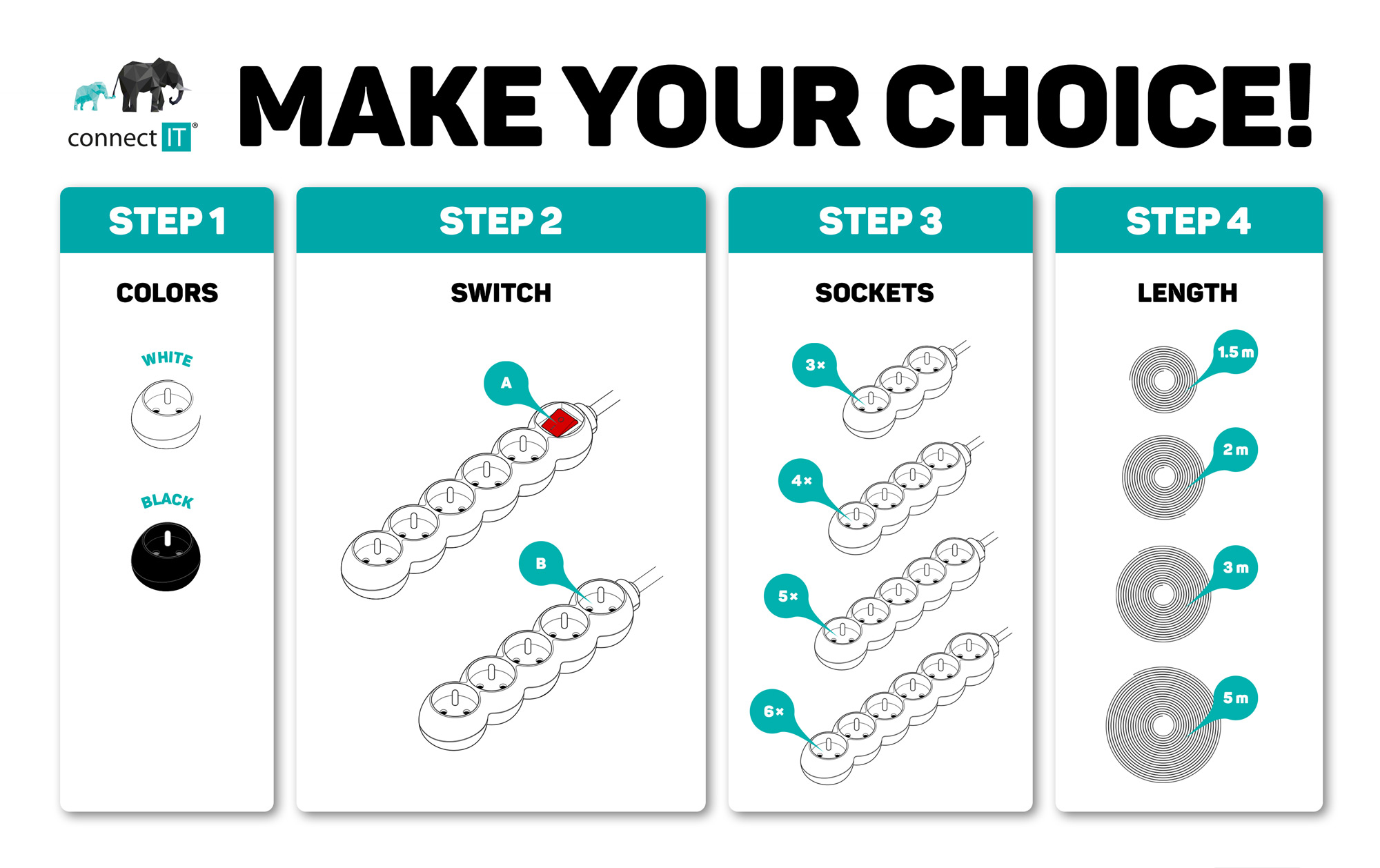 Klíčové vlastnosti: Prodlužovací přívod na 230 V s vypínačem všech zásuvek a dětskou ochranou