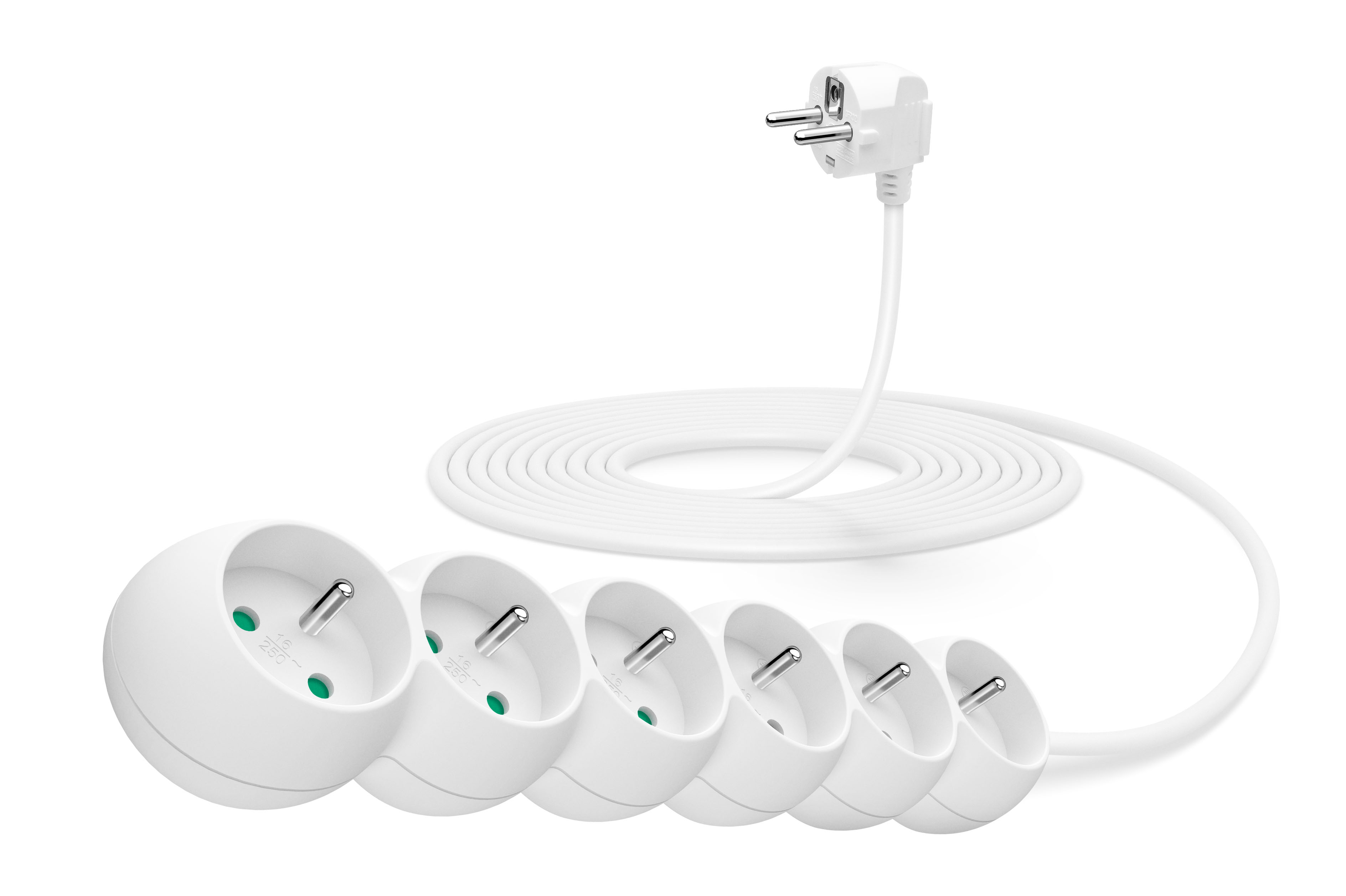 Technické údaje: 6 zásuvek; Zásuvky v úhlu 45° umožňující připojení úhlových koncovek i objemnějších napájecích adaptérů; Výklopné závěsné očko umožňuje zavěšení prodlužky nebo její pevnou instalaci na stěnu; Testováno a certifikováno v Evropě; Kompletní přehled vyráběných barevných variant:; bílá.