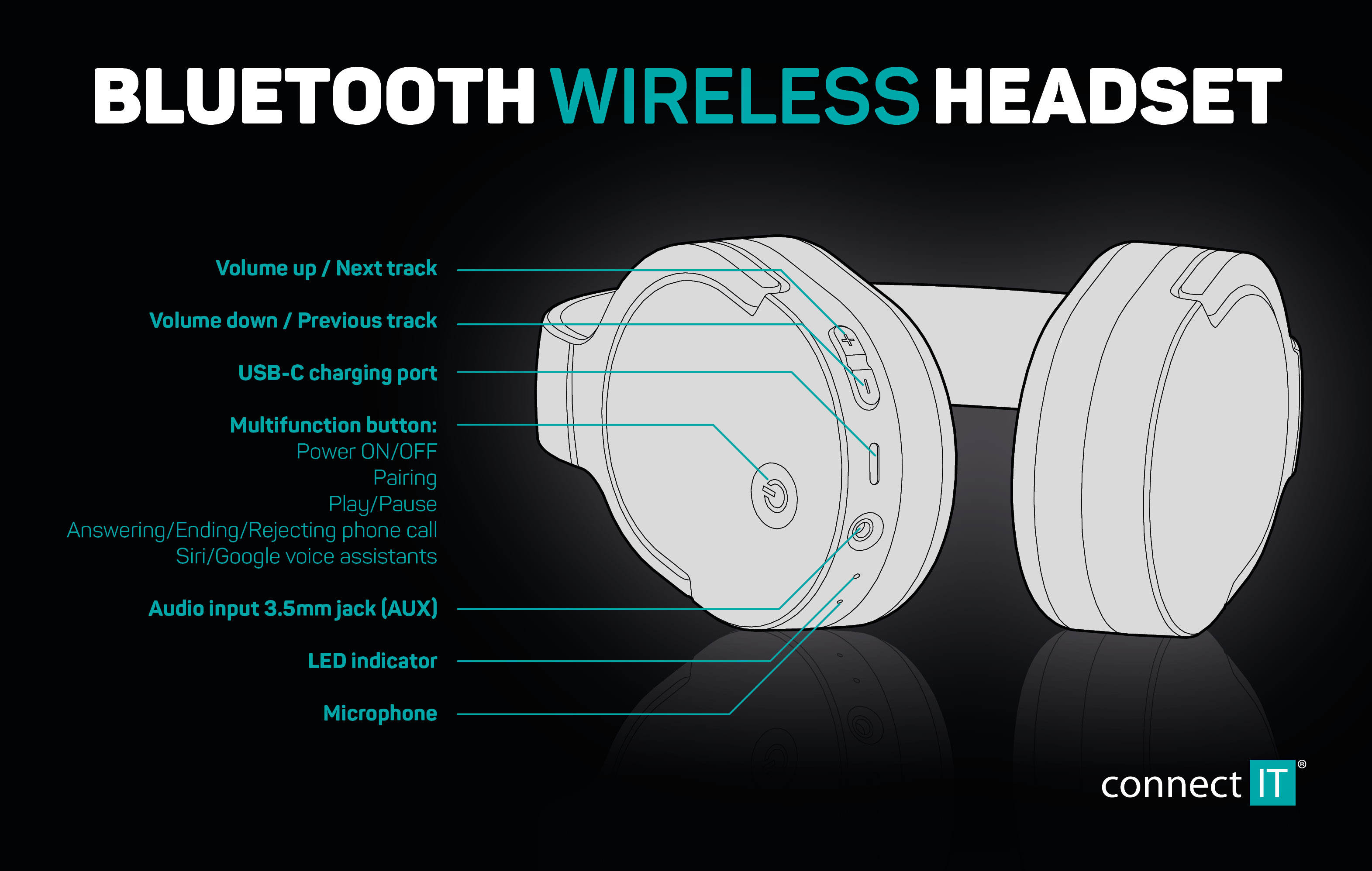 CONNECT IT SuperSonic bezdrátová náhlavní sluchátka - Černá