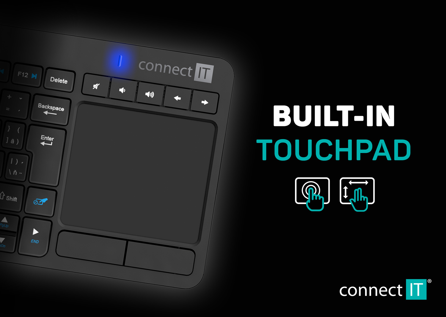 CONNECT IT Touch bezdrátová klávesnice + touch pad (+2x AAA baterie zdarma) - Černá