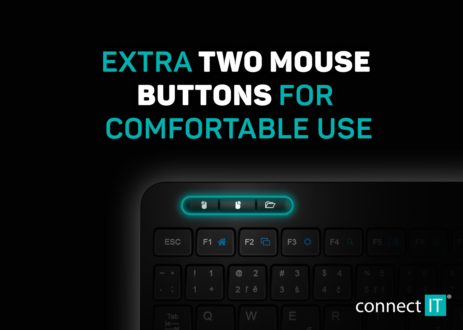 Výhody produktu: Klávesnice nabízí 18 multimediálních a funkčních kláves. Toto kvalitní příslušenství lehce připojíte k Vašemu notebooku, počítači čí chytré TV přes nano USB přijímač, který má dosah až 10 metrů. Dvojí umístění lévého a pravého tlačítka se stejnou funkcí, jakou má běžná počítačová myš (pod touchpadem a v levém horním rohu klávesnice) Vám zajistíé maximální uživatelský komfort. Samozřejmostí je velmi snadná instalace Plug & Play.