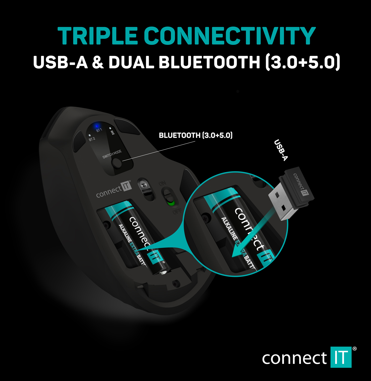 CONNECT IT Triple SmartSwitch bezdrátová myš, 2.4 GHz & BT - Černá