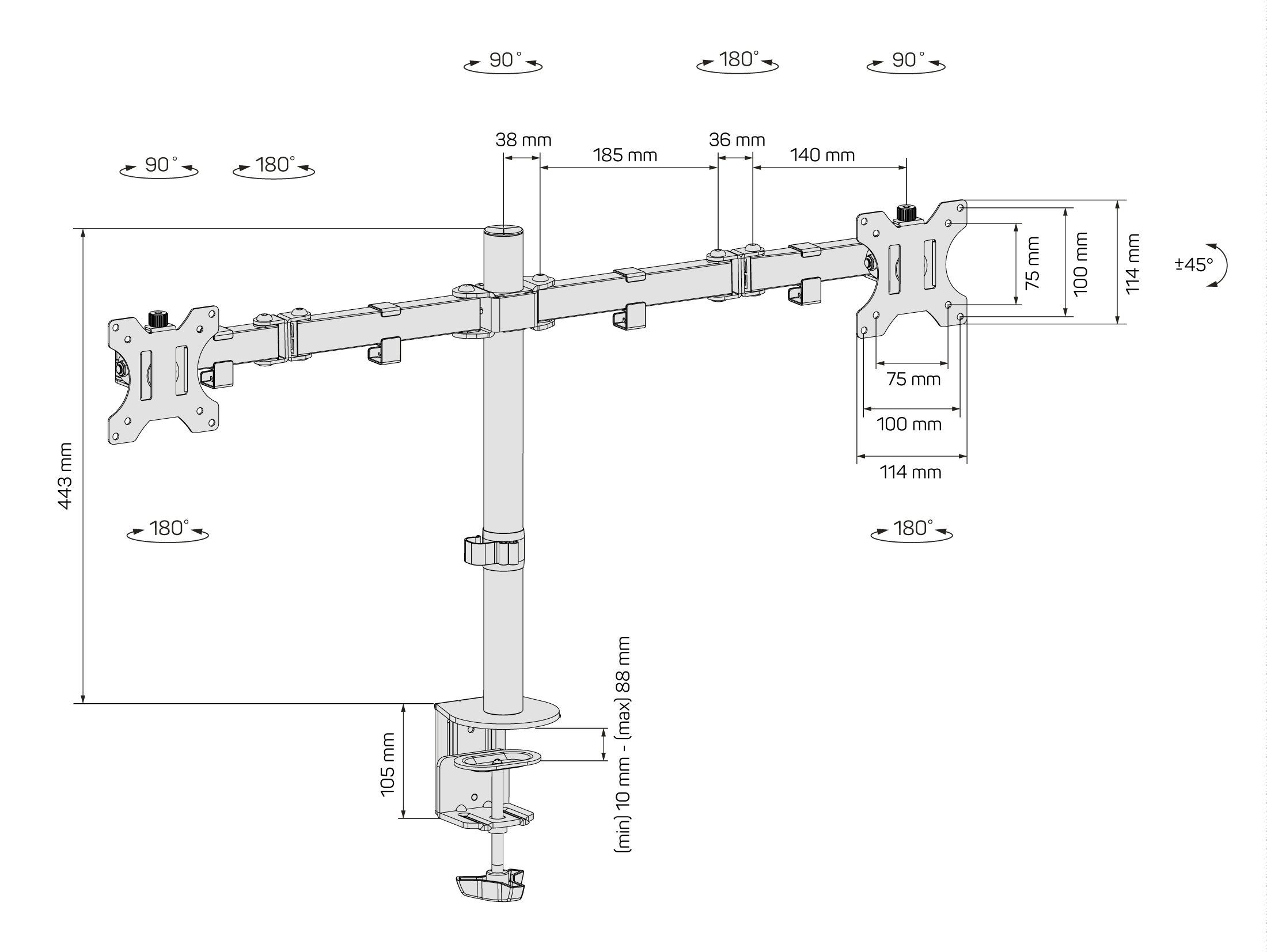 Technické údaje: Kompletní seznam podporovaných roztečí VESA:; VESA 75×75; VESA 100×100; Dva způsoby připevnění díky výměnné patce:; K okraji desky stolu; Kdekoliv doprostřed stolu.