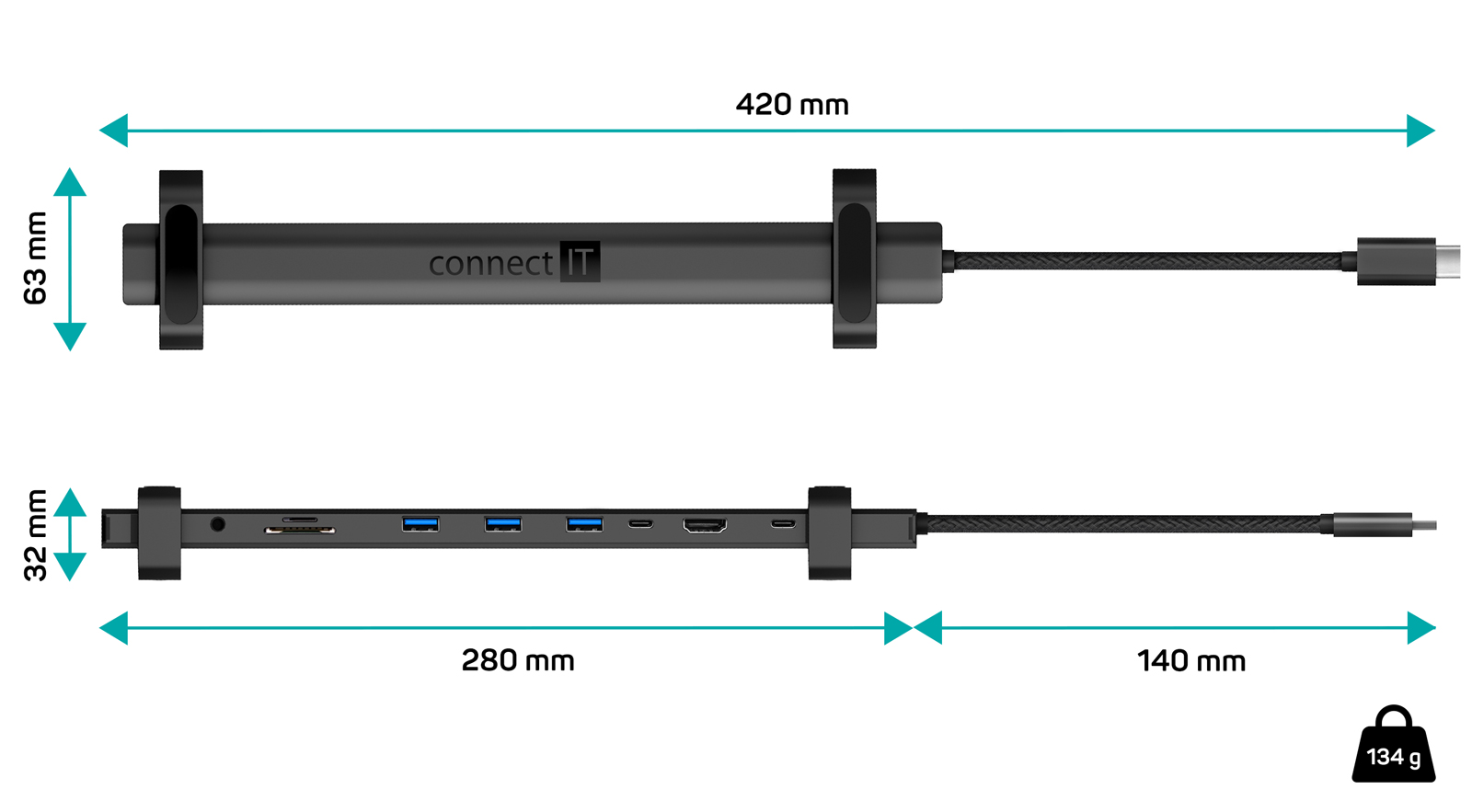 CONNECT IT USB-C dokovací stanice, Multi10IN1 (1xHDMI), externí - Antracitová