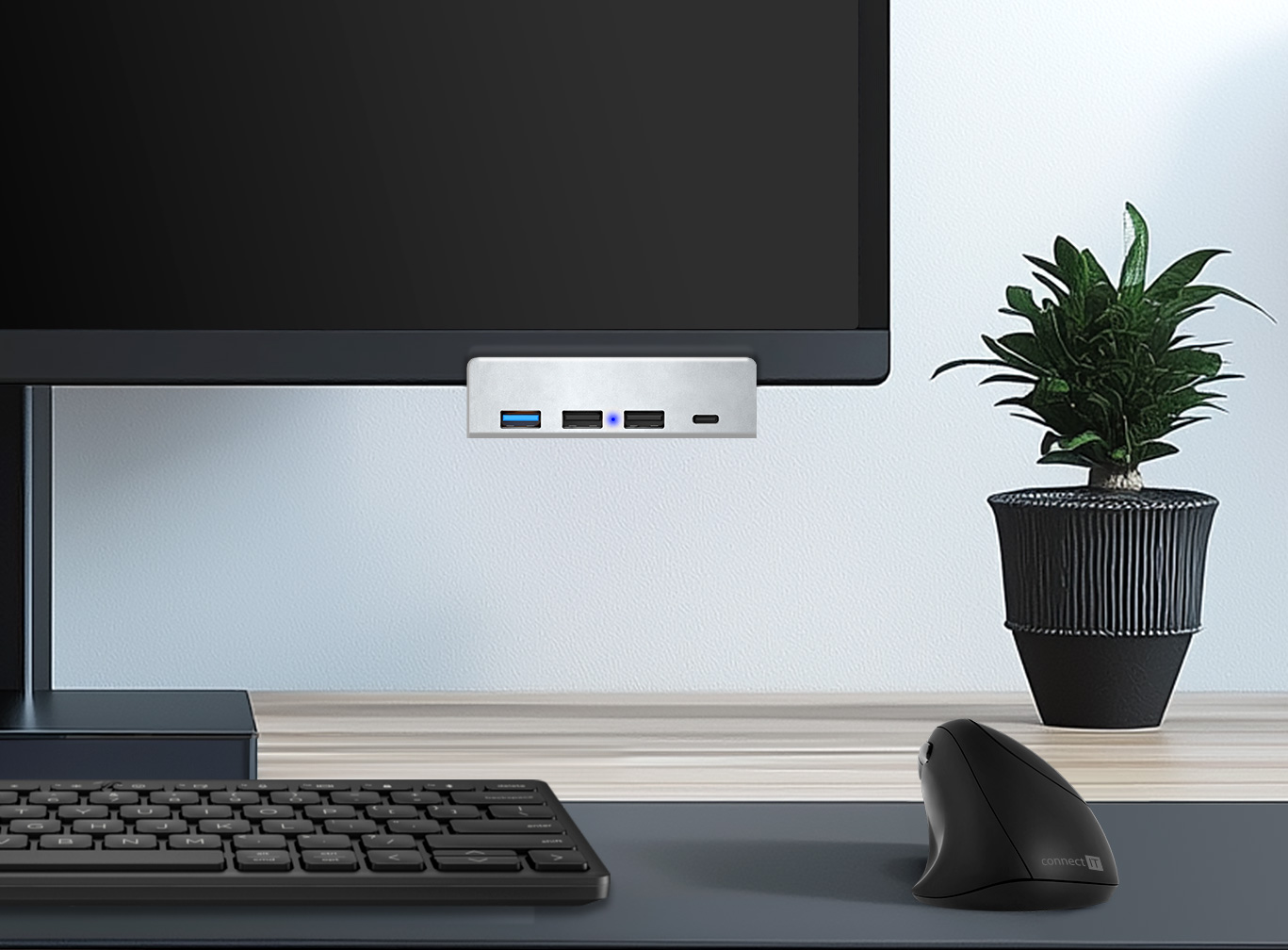 CONNECT IT USB DeskHub 4v1 na desku stolu - Stříbrná