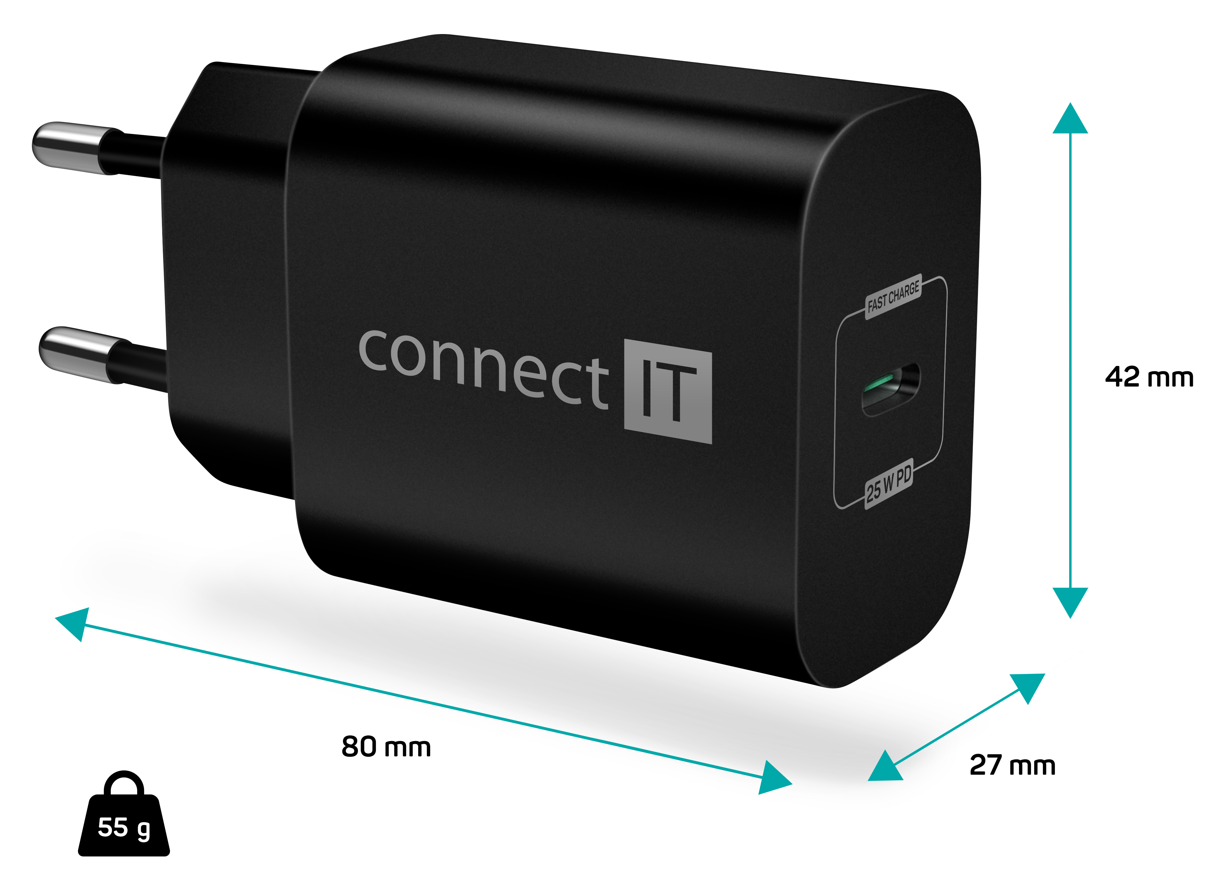 CONNECT IT Voyager2 nabíjecí adaptér 1×USB-C, 25W PD - Černá