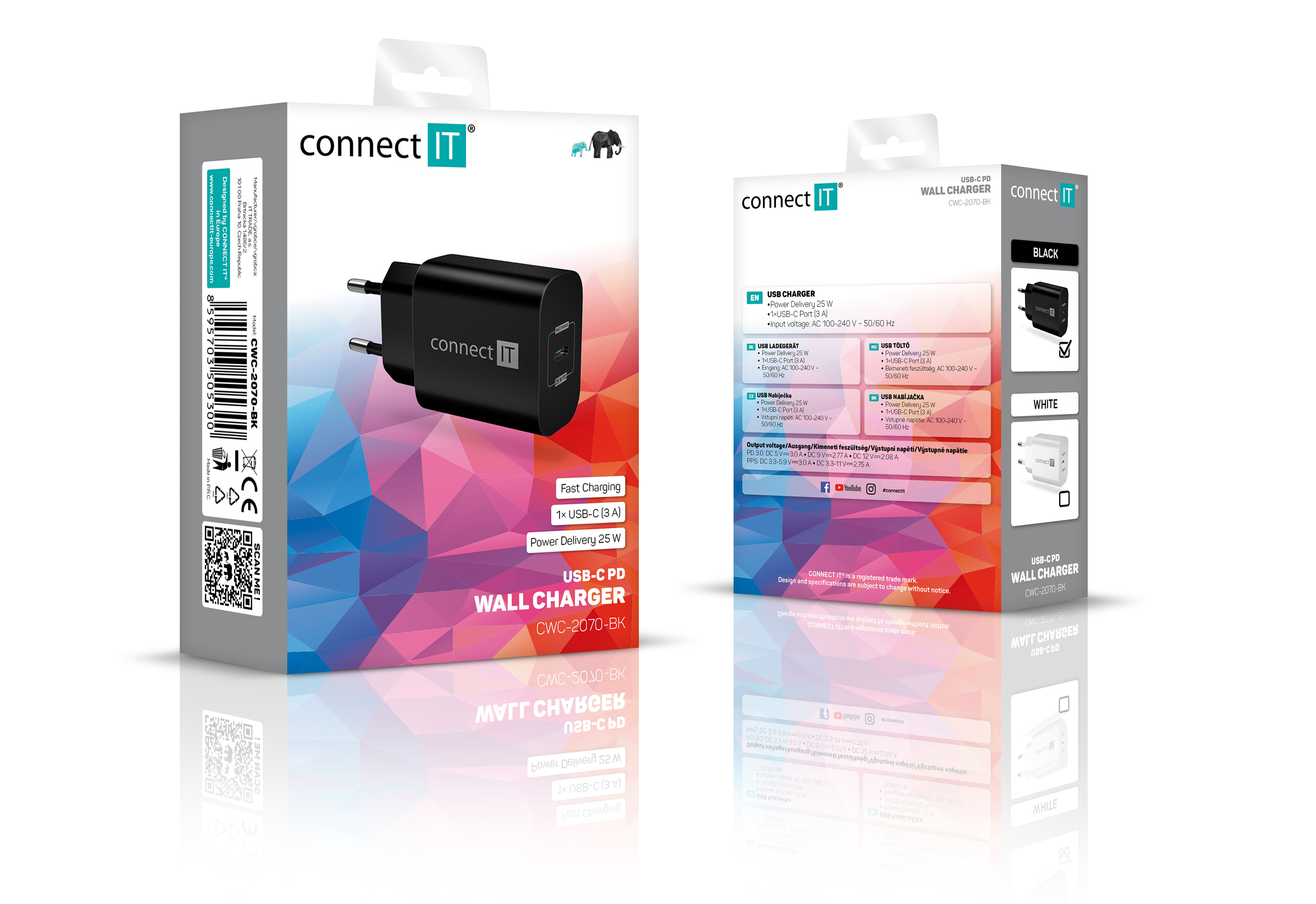 Klíčové vlastnosti: Cestovní USB nabíječka CONNECT IT "Voyager2" určená pro napájení i nabíjení mobilních telefonů, tabletů, power bank, akčních kamer, elektronických čteček knih, MP3 a MP4 přehrávačů, herních konzolí a mnoha dalších přenosných zařízení doma, v kanceláři i na cestách. Technologie Power Delivery (PD) umožňuje rychlonabíjení o výkonu 25 W.